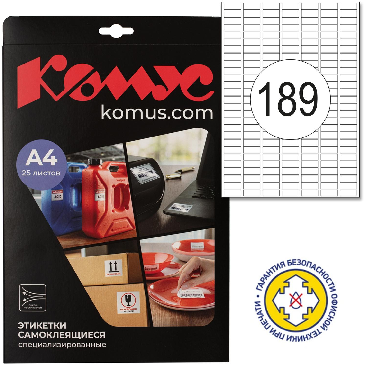 Удаляемые этикетки Комус. При отклеивании не оставляют следов на поверхности. Универсальные, для печати на лазерных, струйных принтерах и копировальных аппаратах. Также можно оставлять надписи от руки. Особая технология гарантирует безопасность офисной техники при печати и неслипаемость листов при хранении. Сферы применения — адресные наклейки на конверты, наклейки на товары, штрихкоды, ценники, предупреждения.Для оформления и печати этикеток удобно использовать шаблон. Для того чтобы увидеть разлиновку шаблона, необходимо в ПО Word открыть вкладку «Макет» и щелкнуть «Отобразить сетку». Для удобства работы с рисунками: выделить вставленный в шаблон рисунок левой кнопкой мыши, открыть вкладку «Формат» и выбрать режим «Обтекание текстом — По контуру».Также можно самостоятельно сформировать шаблон в ПО Word.Пошаговая инструкция по созданию этикеток в ПО Word:1. Откройте текстовый редактор Word, в верхней горизонтальной строке рабочего окна щелкните стрелкой мыши «Сервис», в открывшемся перечне щелкните «Конверты и наклейки» (для Microsoft Word XP — «Письма и рассылки», а затем «Конверты и наклейки»).2. В открывшемся окне «Конверты и наклейки» щелкните «Наклейки», затем в перечне справа щелкните «Параметры». Выберите тип принтера и вариант подачи бумаги.3. В окне «Параметры наклейки» щелкните «Создать». Появится окно, в нижней части которого — окошки для данных о выбранной вами этикетке.4. Введите данные об этикетках: величину верхнего поля, боковых полей и т.д. В окошке «Тип» введите размер этикетки или название, которое вы ей присвоите. (Указанные параметры можно узнать в инструкции, идущей в комплекте с этикетками.) Завершите настройку щелчком «ОК».Данные для печати этикеток в ПО Word: Размер этикетки, см: 2,54×1; Кол-во этикеток на листе: 189; Верхнее поле, см: 1,35; Боковые поля, см: 0,86; Шаг по вертикали, см: 1; Шаг по горизонтали, см: 2,79; Высота наклейки, см: 1; Ширина наклейки, см: 2,54; Число наклеек по горизонтали: 7; Число наклеек по вертикали: 27.5. Закройте окно «Параметры наклейки» (вкладка «Настройка»), нажав «ОК», после чего активизируется окно «Конверты и наклейки».6. В светлой прямоугольной ячейке окна «Конверты и наклейки» соразмерно формату этикетки один раз введите текст, который компьютер автоматически разместит на всех этикетках листа. Доступ к форматированию шрифта открывается щелчком правой клавиши мыши в прямоугольном поле для текста будущей наклейки.7. Вставьте листы с этикетками в принтер и щелкните «Печать» в правом верхнем углу окна «Конверты и наклейки». Для дальнейшей работы с этикетками щелкните «Создать» и сохраните файл как обычный документ редактора Microsoft Word. Сохраненный файл вы можете использовать в качестве шаблона для создания новых этикеток такого же формата.Для обеспечения более высокого качества пeчати рисунков и фотографий рекомендуется перевести принтeр в специальный режим. Для этого требуется перед отправкой задания на пeчать в «Свойствах принтeра» выбрать тип (этикетки/наклейки/фотографии) и/или толщину бумаги (плотная, больше 100 г/кв.м и т.п.) — в зависимости от драйвера принтeра настройки могут отличаться.В рамках ребрендинга производится перевод данного артикула с ТМ Promega на ТМ Комус с сохранением всех потребительских характеристик товара. На переходный период доп