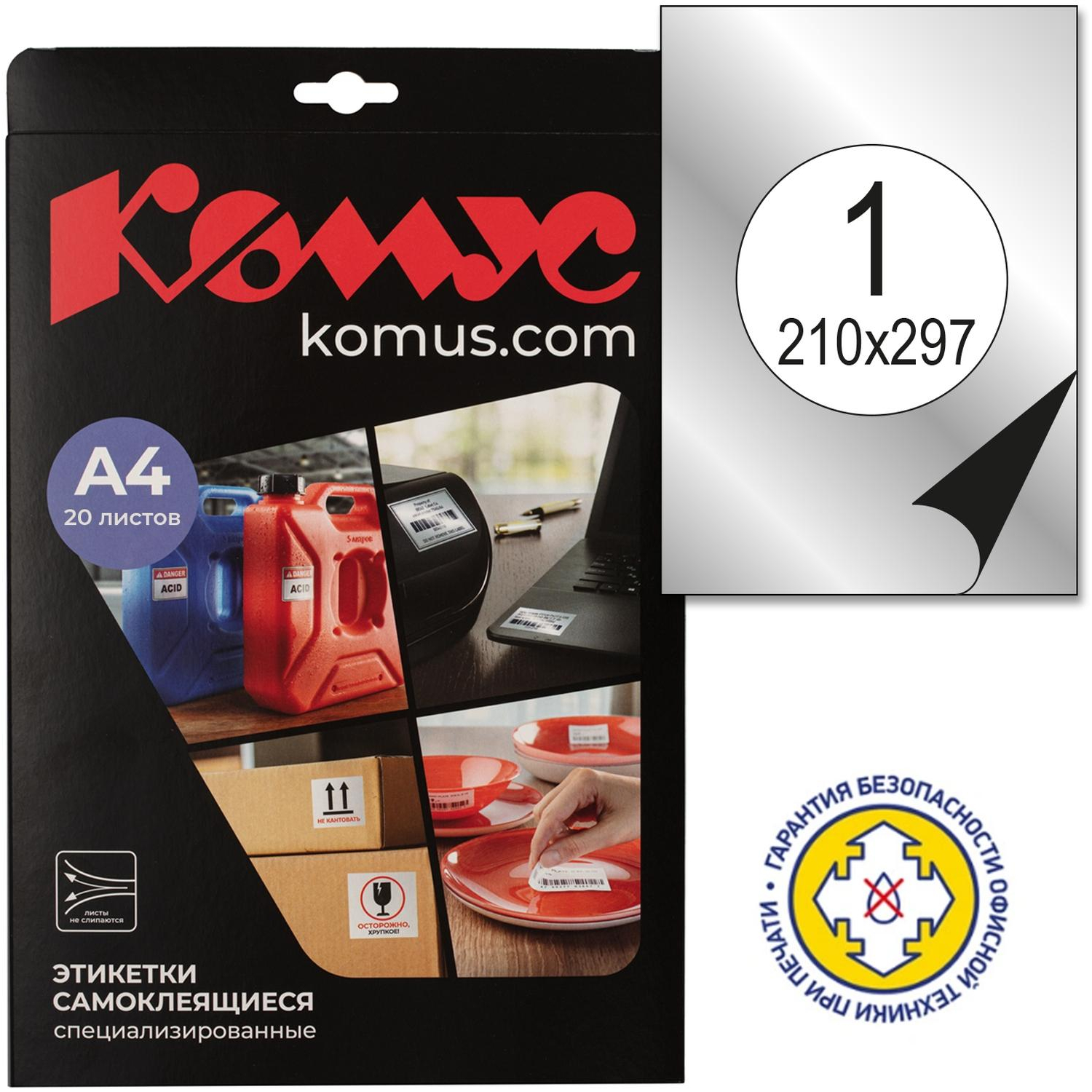 Самоклеящиеся металлизированные этикетки Комус серебристого цвета изготовлены из прочного полиэстера. Оптимальное решение для проведения инвентаризаций, маркировки электронных компонентов и инвентаря. Устойчивы к воздействию загрязняющих веществ при температуре от −20 до +80 градусов Цельсия. В упаковке 20 этикеток формата А4 (210×297 мм).Для оформления и печати этикеток удобно использовать шаблон. Для того чтобы увидеть разлиновку шаблона, необходимо в ПО Word открыть вкладку «Макет» и щелкнуть «Отобразить сетку». Для удобства работы с рисунками: выделить вставленный в шаблон рисунок левой кнопкой мыши, открыть вкладку «Формат» и выбрать режим «Обтекание текстом — По контуру».Также можно самостоятельно сформировать шаблон в ПО Word.Пошаговая инструкция по созданию этикеток в ПО Word:1. Откройте текстовый редактор Word, в верхней горизонтальной строке рабочего окна щелкните стрелкой мыши «Сервис», в открывшемся перечне щелкните «Конверты и наклейки» (для Microsoft Word XP — «Письма и рассылки», а затем «Конверты и наклейки»).2. В открывшемся окне «Конверты и наклейки» щелкните «Наклейки», затем в перечне справа щелкните «Параметры». Выберите тип принтера и вариант подачи бумаги.3. В окне «Параметры наклейки» щелкните «Создать». Появится окно, в нижней части которого — окошки для данных о выбранной вами этикетке.4. Введите данные об этикетках: величину верхнего поля, боковых полей и т.д. В окошке «Тип» введите размер этикетки или название, которое вы ей присвоите. (Указанные параметры можно узнать в инструкции, идущей в комплекте с этикетками.) Завершите настройку щелчком «ОК».Данные для печати этикеток в ПО Word: Размер этикетки, см: 21,0×29,7; Кол-во этикеток на листе: 1; Верхнее поле, см: 0; Боковые поля, см: 0; Шаг по вертикали, см: 26,69; Шаг по горизонтали, см: 20; Высота наклейки, см: 26,69; Ширина наклейки, см: 20,0; Число наклеек по горизонтали: 1; Число наклеек по вертикали: 1.5. Закройте окно «Параметры наклейки» (вкладка «Настройка»), нажав «ОК», после чего активизируется окно «Конверты и наклейки».6. В светлой прямоугольной ячейке окна «Конверты и наклейки» соразмерно формату этикетки один раз введите текст, который компьютер автоматически разместит на всех этикетках листа. Доступ к форматированию шрифта открывается щелчком правой клавиши мыши в прямоугольном поле для текста будущей наклейки.7. Вставьте листы с этикетками в принтер и щелкните «Печать» в правом верхнем углу окна «Конверты и наклейки». Для дальнейшей работы с этикетками щелкните «Создать» и сохраните файл как обычный документ редактора Microsoft Word. Сохраненный файл вы можете использовать в качестве шаблона для создания новых этикеток такого же формата.Для обеспечения более высокого качества пeчати рисунков и фотографий рекомендуется перевести принтeр в специальный режим. Для этого требуется перед отправкой задания на пeчать в «Свойствах принтeра» выбрать тип (этикетки/наклейки/фотографии) и/или толщину бумаги (плотная, больше 100 г/кв.м и т.п.) — в зависимости от драйвера принтeра настройки могут отличаться.В рамках ребрендинга производится перевод данного артикула с ТМ Promega на ТМ Комус с сохранением всех потребительских характеристик товара. На переходный период допускается поставка данной продукции в двух вариантах дизайна.