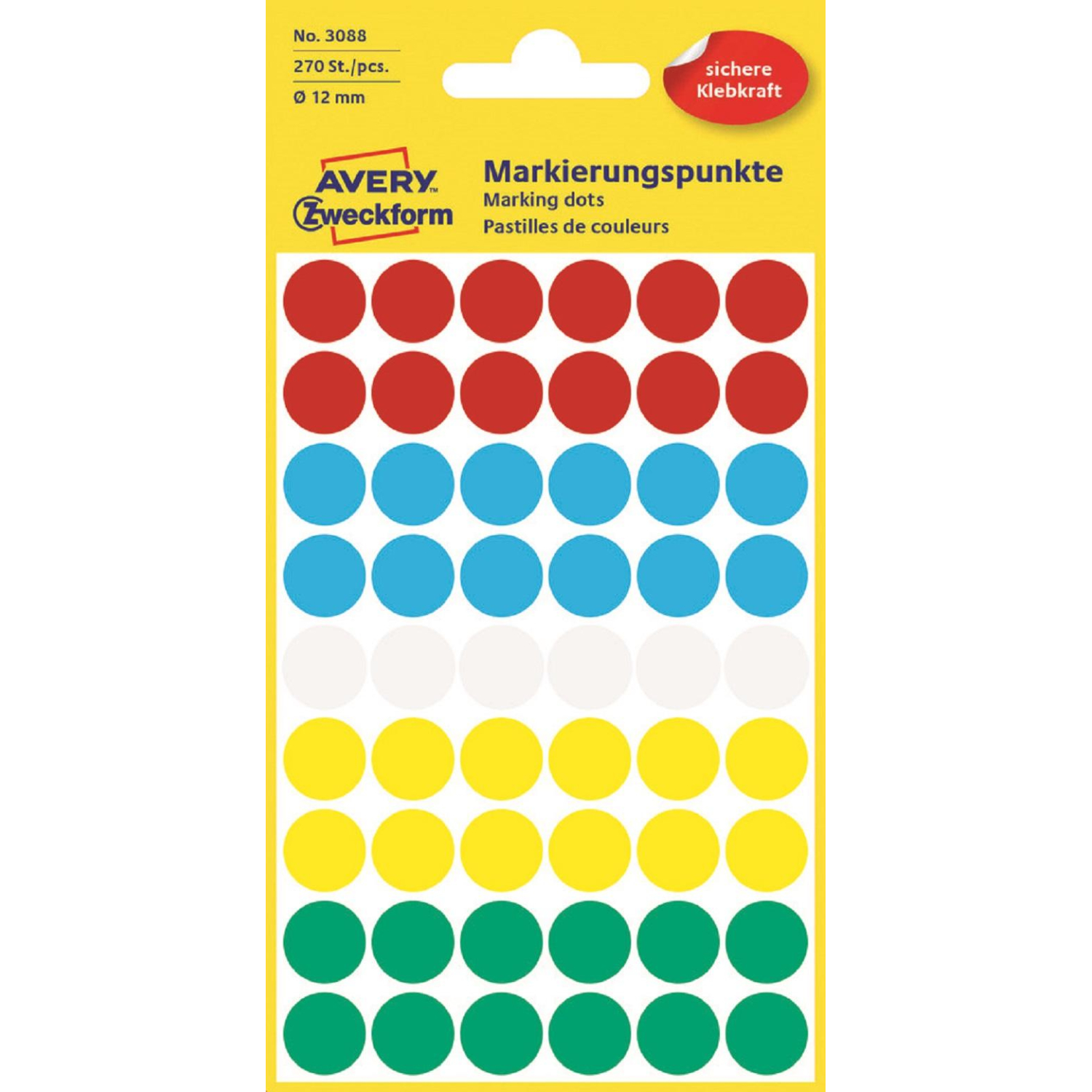 Этикетки самоклеящиеся точки3088 d=12 мм, многоцветный, 270шт/уп