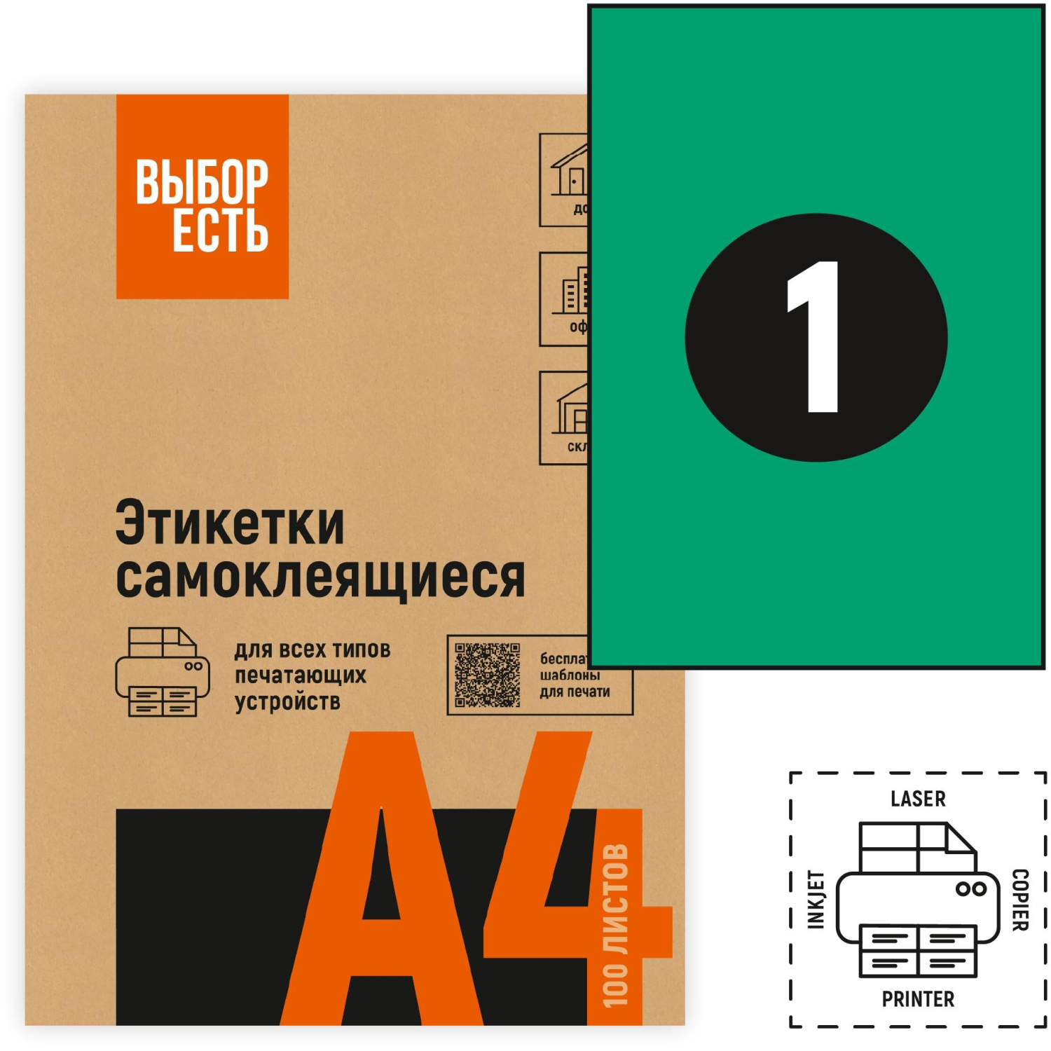 Этикетки самоклеящиеся 210х297мм зеленая 1шт/л А4 50л/уп