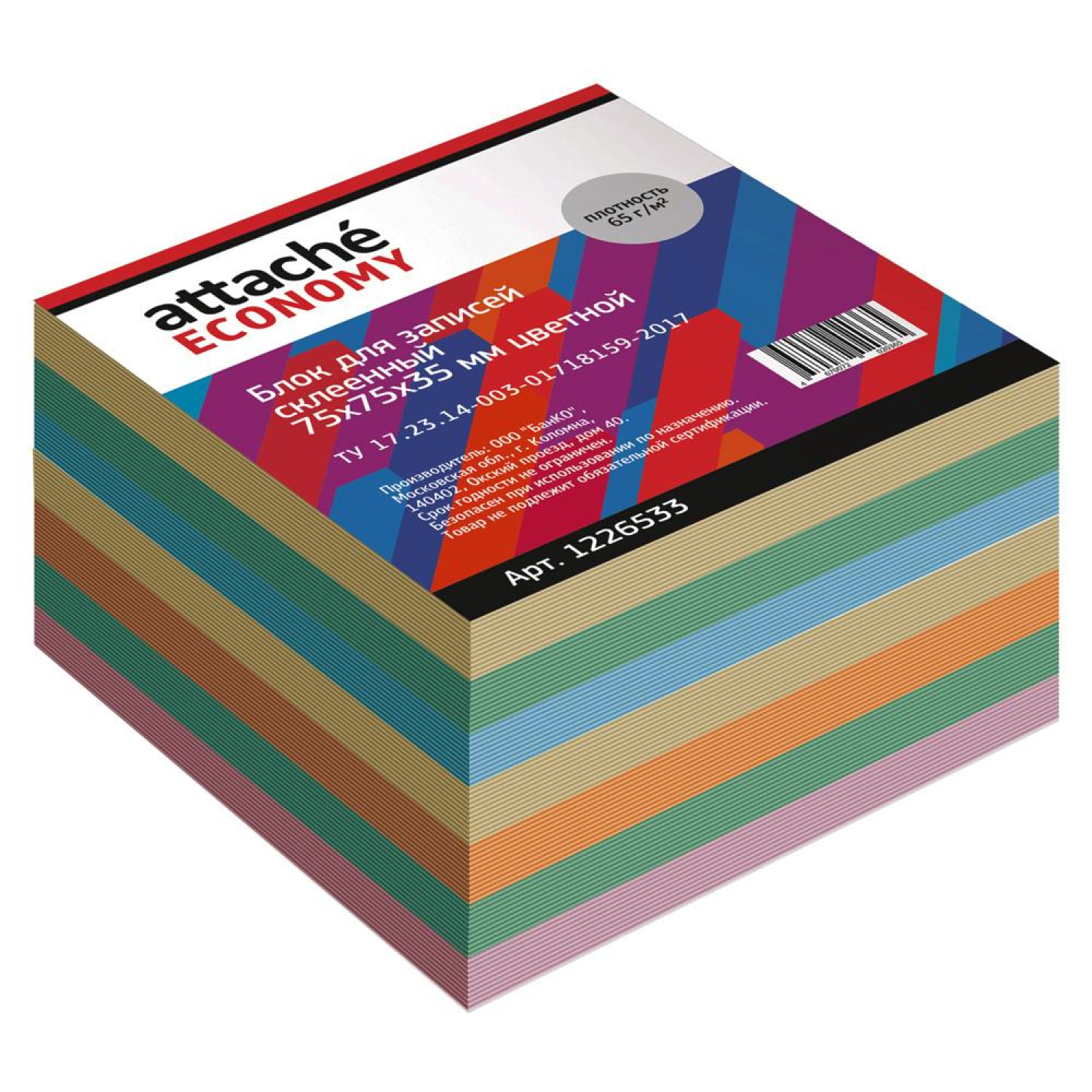 Блок для записей Attache предназначен для работы в офисе или дома. Будет полезен в использовании для рабочих процессов и повседневных задач. Отлично подходит для работников офиса.Блок высотой 3,5 см сложен из квадратных листов размером 7,5×7,5 см. Листы склеены между собой. Листы изготовлены из белой офсетной бумаги плотностью 65 г/м2. В блоке представлены листы пяти цветов: желтого, голубого, зеленого, оранжевого, розового. Блок для записей подходит для письма любыми типами ручек и карандашей. Поставляется в термоусадочной пленке, защищающей блок при транспортировке. Для повышения удобства рекомендуется использование в пластиковых подставках и настольных органайзерах.В рамках ребрендинга производится перевод данного артикула из ТМ Attache Economy в ТМ Attache с сохранением всех потребительских свойств товара. Во время переходного периода допускается поставка данной продукции в двух вариантах дизайна упаковки.