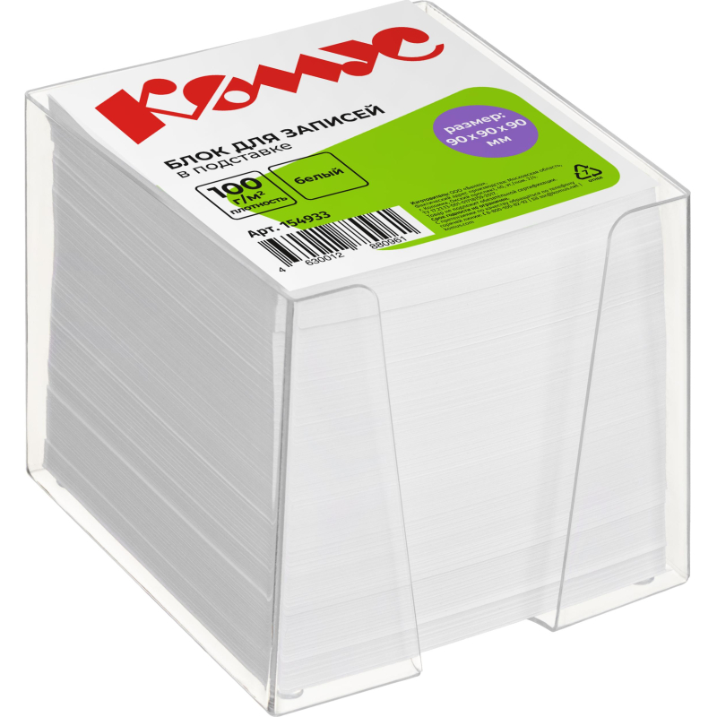 Блок для записей в подставке КОМУС в стакане 9х9х9 белый блок 100 г, 100