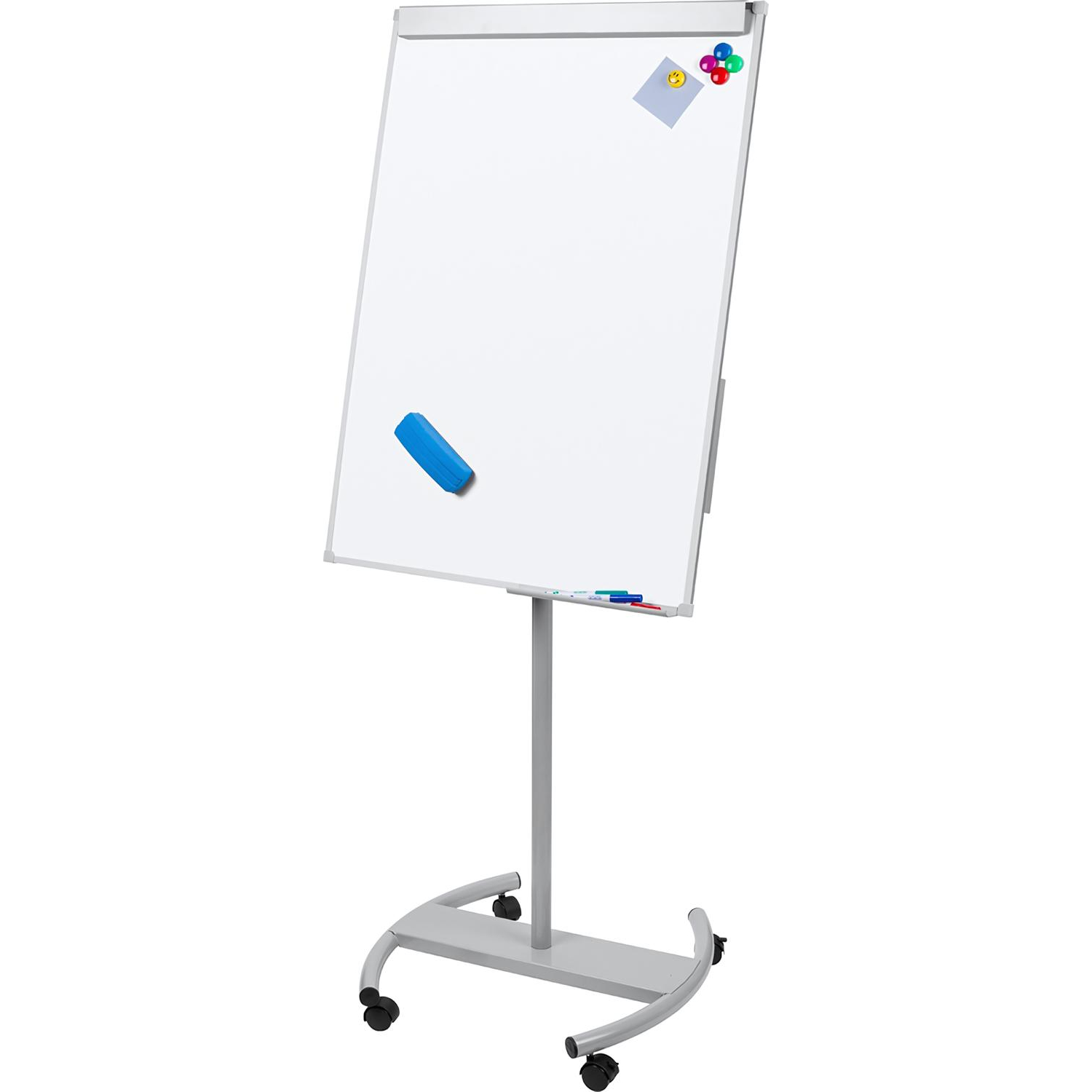Мобильный флипчарт на роликах с магнитно-маркерным покрытием. Флипчарты являются эффективными и удобным средством для презентации, конференций. Предназначен для работ маркерами сухого стирания и размещения информации с помощью магнитов. Рамка из анодированного алюминия и пластиковые уголки. Держатель для бумажного блока на винтах. Стильная мобильная подставка стального цвета на колесиках. Ролики с фиксатором. В комплект поставки входит лоток для маркеров. Размер поверхности 70x100. Высота 185 см. Флипчарт используется только вертикально. Угол наклона изменить нельзя По поверхности флипчарта рекомендуется писать маркерами для досок. По поверхности блока бумаги рекомендуется писать маркерами для флипчартов.Страна производитель - Россия.Гарантия 1 год.Размер основания 55x60 см.Между колесами на одной дуге 50 см, на разных дугах 35 см. Для удаления пленки потяните за верхний свободный угол, пленка легко отойдет от рабочей поверхности. При необходимости проведите вдоль рамы канцелярским ножом. Основание к стойке крепится болтом 14x60, а доска к стойке с помощью двух гаек м8.