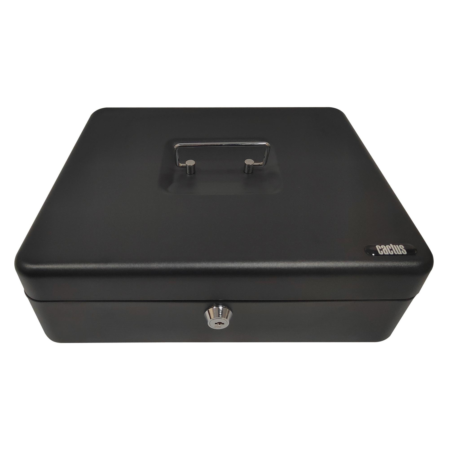 Ящик для денег Cactus предназначен для хранения и транспортировки денег, ценных вещей, документов, печатей или медикаментов. Используется дома и в офисе для ограничения доступа посторонних лиц. Отличное сочетание надежности и вместительности.Съемный лоток из ударопрочного пластика с вместительными отделениями. Подходит для денег, карточек, ключей, печатей. Под лотком есть пространство, где можно хранить документы и бумаги. Надежный корпус с удобной ручкой. С ключевым замком, в комплекте 2 ключа.