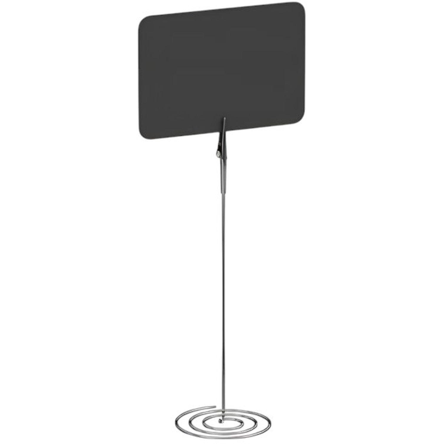 Ценникодержатель пластиковый 42×177 мм серебристый/чёрный (5 штук в упаковке, в наборе: таблички, маркер)Набор предназначен для эффективного и многоразового размещения информации и ценников в магазинах, ресторанах, кафе, пекарнях и других заведениях. В состав набора входят металлические держатели-зажимы на спиральном основании, чёрные таблички формата А8 и белый меловой маркер, который легко смывается водой.Состав набора:• Держатели ценников со спиральным основанием (5 шт.)• Маркерные таблички формата А8 (5 шт.)• Меловой маркер белого цвета (1 шт.)