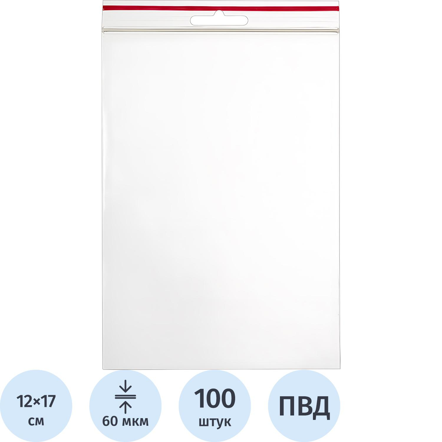 Пакет с замком (Zip Lock) с европодвесом 12 х 17 см, 60 мкм, 100 шт/уп