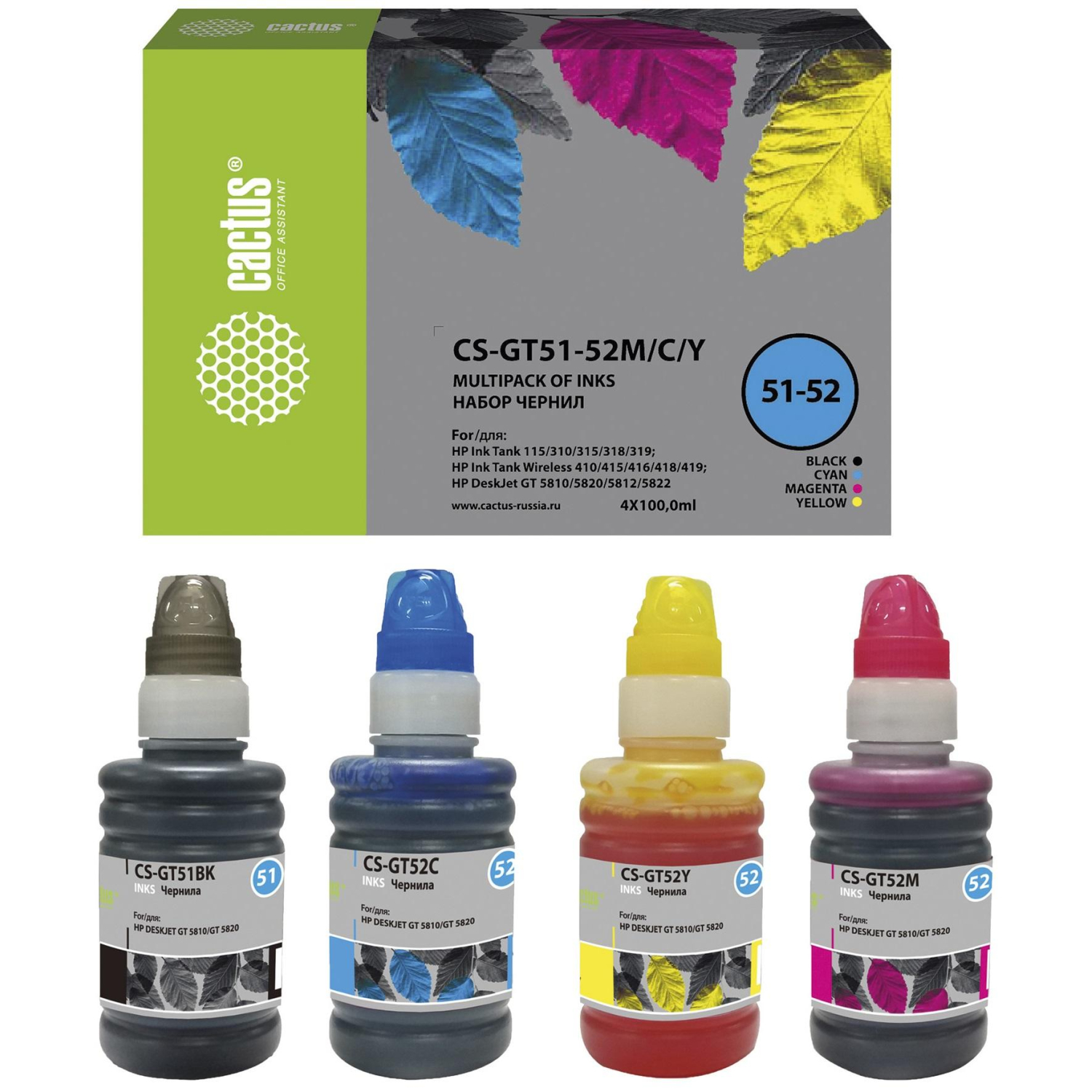 Чернила Cactus CS-GT51-52M/C/Y набор 4x100 мл для DeskJet GT 5810/5820/5812
