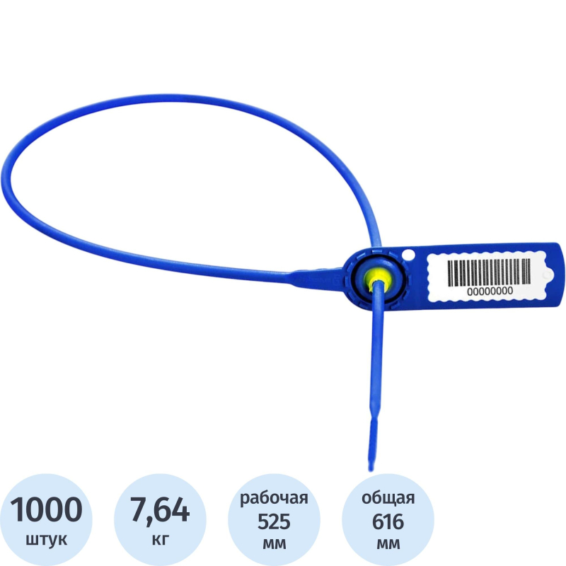 Пломба пластиковая номерная 525 мм синяя 1000 шт/уп