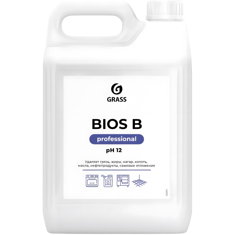 Очиститель Grass BIOS-B 5.5 кг (концентрат)Назначение:Применяется для очистки промышленного оборудования, ж/д цистерн, ёмкостей и хранилищ от нефтепродуктов, растительных и животных жиров с различных поверхностей.Способ применения:Для ручной или автоматической мойки растворить состав из расчёта 30-50г/л воды, нанести на обрабатываемую поверхность, экспозиция 1-2 минуты, не допускать высыхания, сбить струёй воды под давлением. Рекомендуемая температура воды 40-60 градусов.Меры предосторожности:Работу осуществлять в перчатках. При попадании в глаза промыть большим количеством воды и обратиться к врачу. Средство может использоваться от −10 до 40 °C. Перед первым применением убедитесь (в незаметном месте), что не повреждает очищаемую поверхность. Не применять на алюминии и термопластиковых поверхностях. Только для профессионального использования!Состав5-15% неионогенные ПАВ, <5% соль ЭДТА, гидроксид натрия, ароматизирующий компонент, краситель.ГОСТ/ТУТУ 2380-005-92962787-11Условия хранения:В сухом тёмном месте при температуре от 0 до 35 °C. Хранить в плотно закрытой упаковке в местах, недопустимых для детей.Срок годности:36 месяцев.