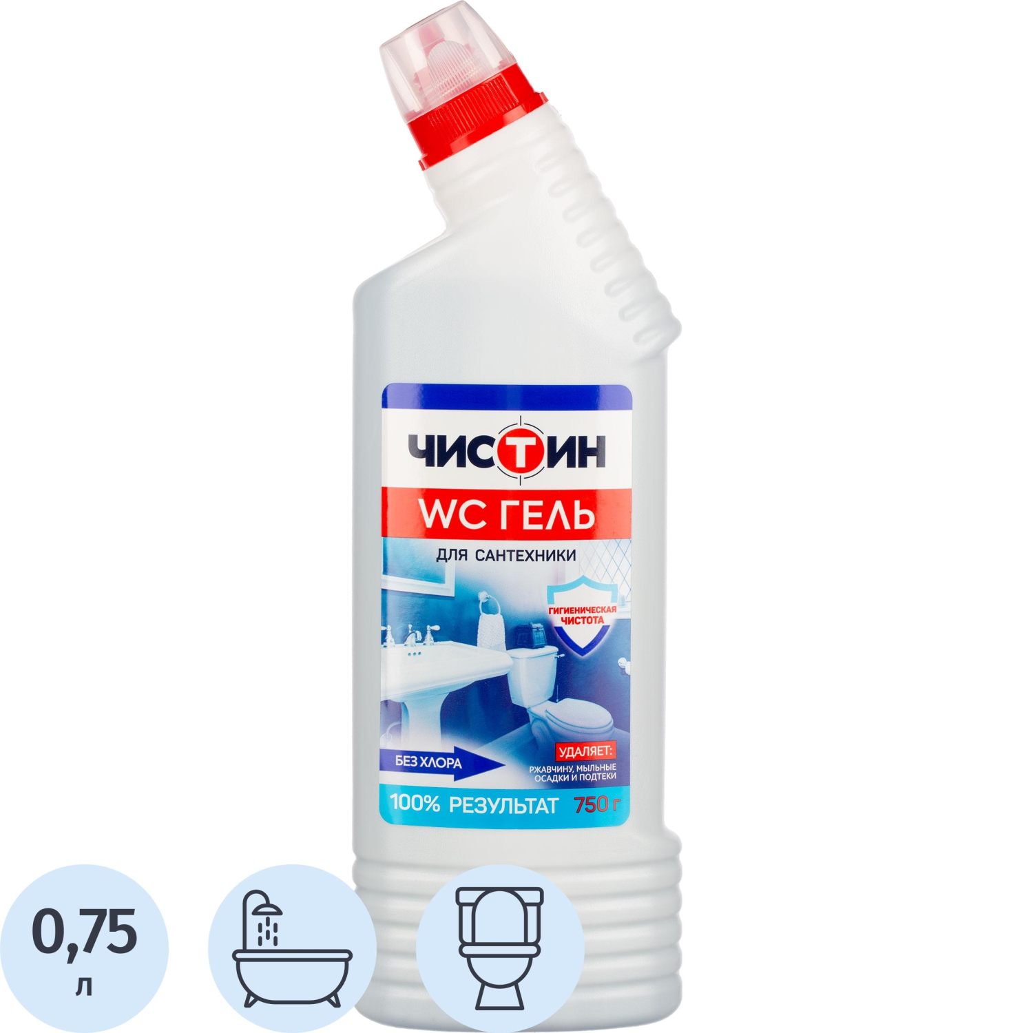 Средство для сантехники чистящее Чистин WC гель 0.75 кг для чистки ванн и душевых/для уборки туалетаНазначение: санитарно-гигиеническое средство удаляет ржавчину, мочевой камень и известковый налёт. Эффективно устраняет мыльные осадки и подтёки. Не содержит хлор.Способ применения: — Унитазы — нанести средство под ободок и распределить по внутренней поверхности, выдержать более 10 минут, почистить и смыть водой. При необходимости обработку повторить.— Фаянсовые раковины — обработать средством и смыть водой.— Полы (плитка, линолеум), сантехническая арматура, пластмасса — мыть раствором: 2-3 колпачка средства на 1 л воды.Меры предосторожности: осторожно! Содержит щавелевую кислоту. При попадании в глаза и на кожу вызывает раздражение. При работе рекомендуется использовать щётку или резиновые перчатки.— При попадании на кожу — промыть большим количеством воды.— При попадании в глаза — осторожно промывать водой в течение нескольких минут. При необходимости обратиться за медицинской помощью.Состав: 5-15% АПАВ, щавелевая кислота; <5% загуститель, ингибитор коррозии, краситель, ароматизирующая добавка.Условия хранения: хранить в плотно закрытой упаковке, отдельно от пищевых продуктов, в недоступных для детей местах. Не применять для чистки чувствительных к действию кислот поверхностей (мрамор, акрил, эмаль). Не смешивать с другими средствами. Средство замерзает, после размораживания сохраняет свои свойства. По истечении срока годности средство и упаковку утилизировать как бытовой отход.Срок годности: 2 года с даты изготовления (дату изготовления см. на упаковке).