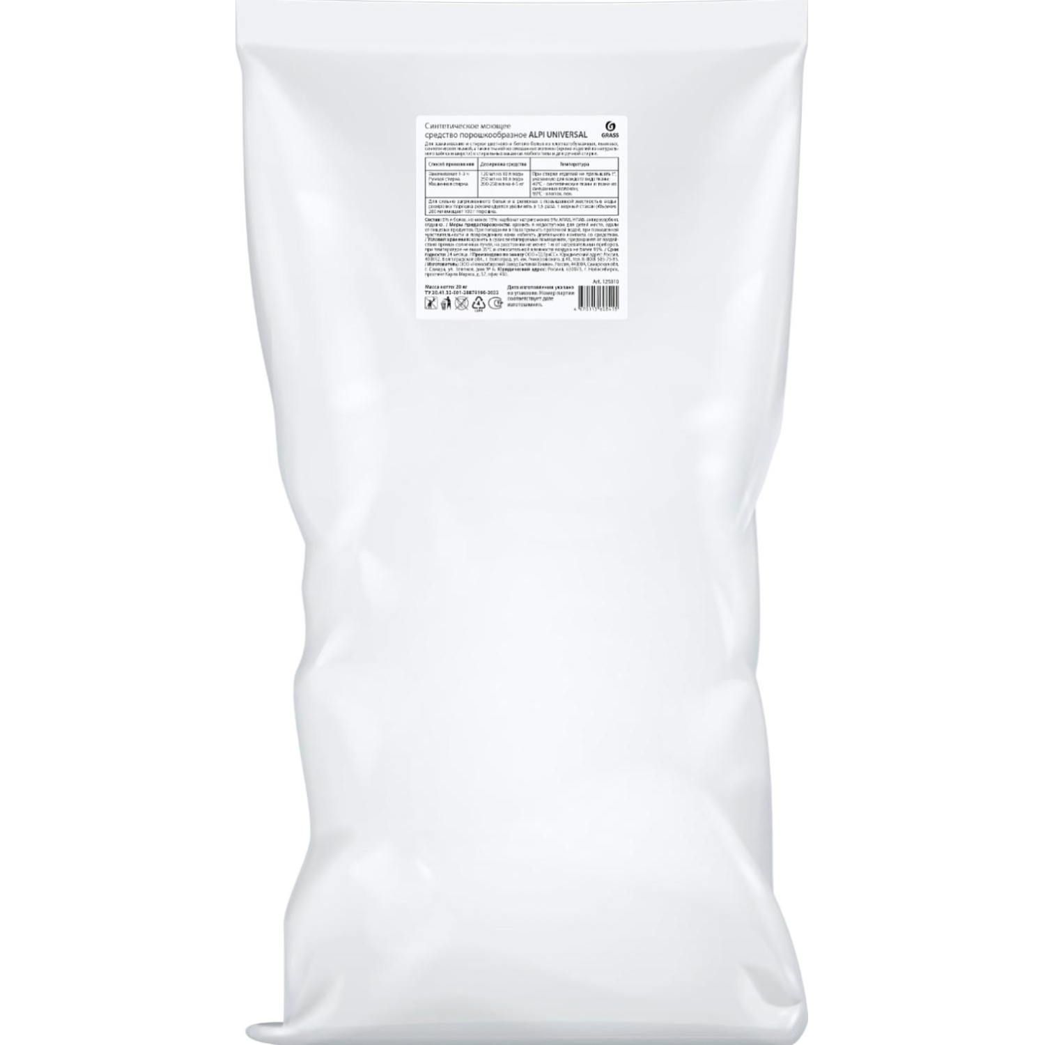 Порошок стиральный автомат Grass Alpi Universal 20 кг для белого и цветного бельяНазначение: синтетическое моющее средство порошкообразное Alpi universal предназначен для замачивания цветного и белого белья из хлопчатобумажных, льняных, синтетических тканей, а также тканей из смешанных волокон (кроме изделий из натурального шёлка и шерсти) в стиральных машинах любого типа и для ручной стирки.Способ применения: для замачивания 120 мл на 10 л воды на 1-3 часа. Для ручной стирки 250 мл на 10 л воды, для машинной стирки 200-250 мл на 4-5 кг. При стирке изделий не превышать температуры, указанной для каждого вида ткани: 40 градусов — синтетические ткани и ткани из смешанных волокон, 90 градусов — хлопок и лён. Для сильно загрязнённого белья и в регионах с повышенной жёсткостью воды дозировку порошка рекомендуется увеличить в 1.5 раза. 1 мерный стакан объёмом 200 мл смещает 100 г порошка.Меры предосторожности: хранить в недоступном для детей месте, вдали от пищевых продуктов. При попадании в глаза промыть проточной водой, при повышенной чувствительности и повреждениях кожи избегать длительного контакта со средством.Состав: 5% и более, но не менее 15%: карбонат натрия; менее 5%; АПАВ, НПАВ, <5% диспергатор, антиресорбент, отдушка.Условия хранения: хранить в сухих вентилируемых помещениях, предохраняя от воздействия прямых солнечных лучей, на расстоянии не менее 1 метра от нагревательных приборов, при температуре не выше 35 градусов и относительной влажности воздуха не более 95%. Срок годности: 24 месяца с даты производства.