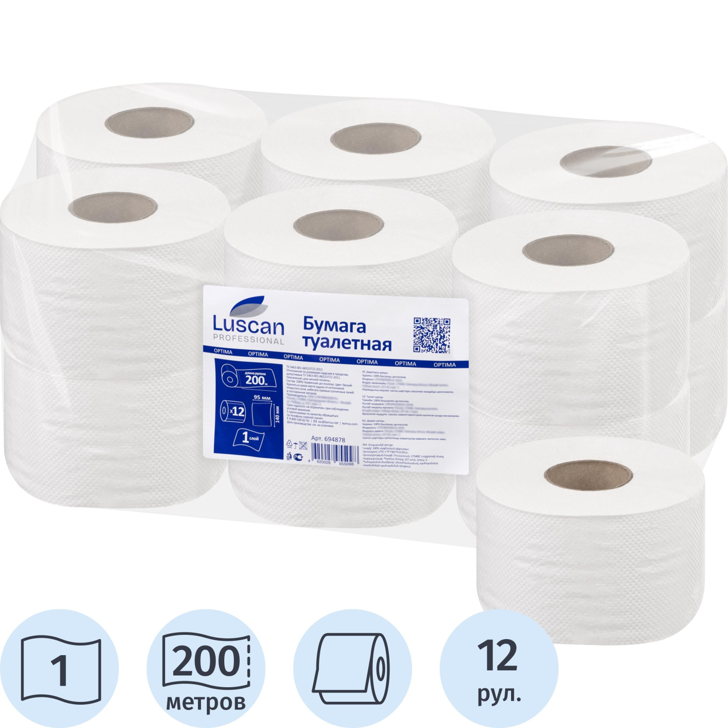 Бумага туалетная д/дисп Luscan Professional 1сл бел цел втул 200м 12рул/уп