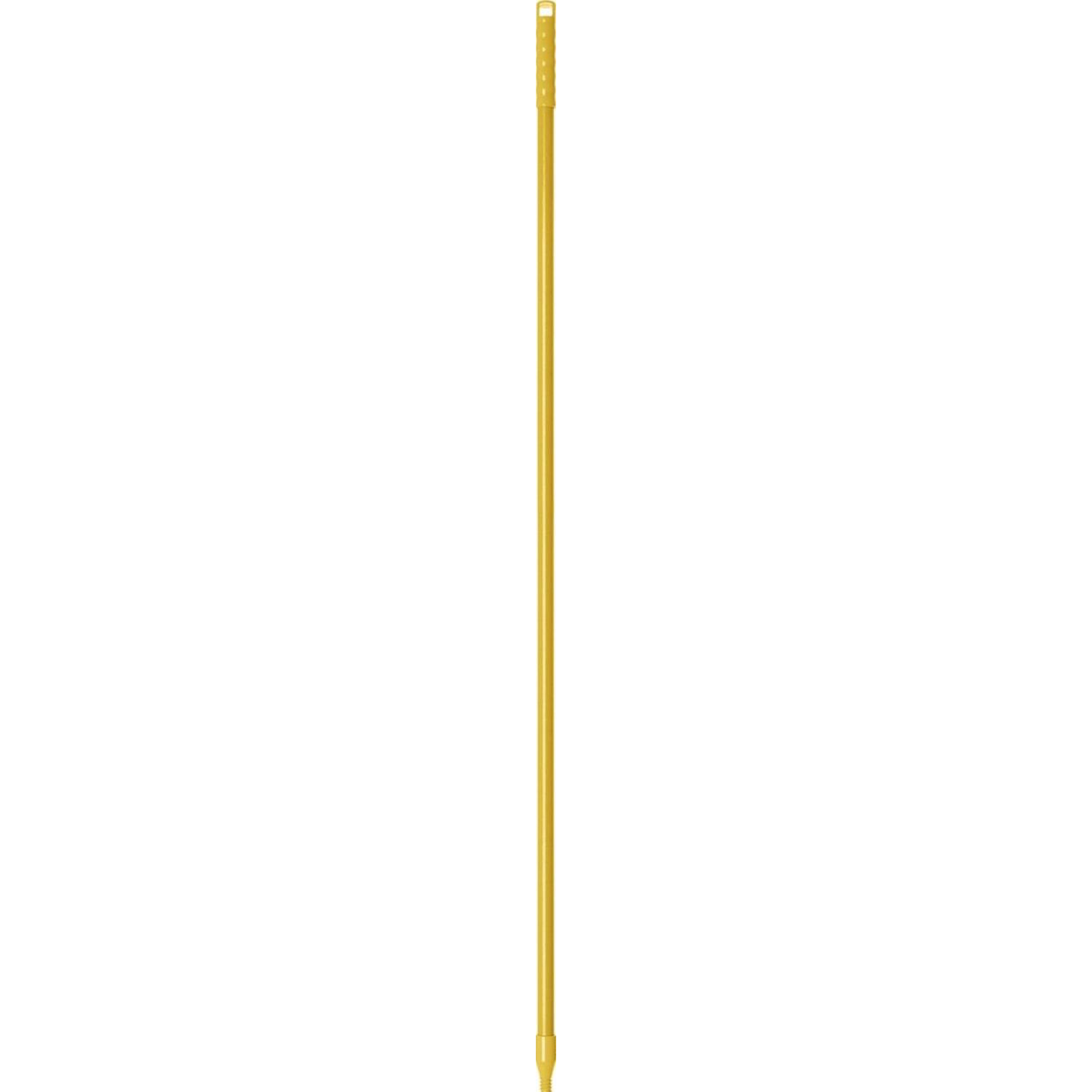Рукоятка HQ Profiline стекловолокно 150 см жёлтая. Рукоятка стекловолоконная 150 см от HQ предназначена для работы в помещениях с повышенными санитарными требованиями. Рукоятка отвечает требованиям безопасности на пищевых производствах.Рукоятка не подвержена коррозии, ее монолитная конструкция не способствует размножению бактерий. Инвентарь изготовлен из стекловолокна, подвес и резьба выполнены из полипропилена. Материалы устойчивы к воздействию окружающей среды и перепадам температур, не проводят электричество. Рукоятка с еврорезьбой подходит для сверхгигиеничных сгонов бренда HQ. Размер: длина общая — 150 см. Длина подвеса — 15 см. Диаметр рукоятки — 24 мм. Вес: 670 +/-10 г. Состав: стекловолокно, полипропилен (ПП). Температурный режим использования: от &-8722;15С до 79С. Режим автоклавирования: 90С. Преимущества: — Еврорезьба делает рукоятку комплементарной к инвентарю других производителей. — Стекловолоконное основание рукоятки устойчиво к химическим моющим средствам. — Стекловолоконная рукоятка не подвержена коррозии. — Не способствует размножению бактерий. — Устойчива к воздействию окружающей среды и перепадам температур. — Не проводит электричество. — Рукоятка отвечает требованиям безопасности на пищевых производствах. — Подвес для настенного хранения и анатомическая основание держателя рукоятки.