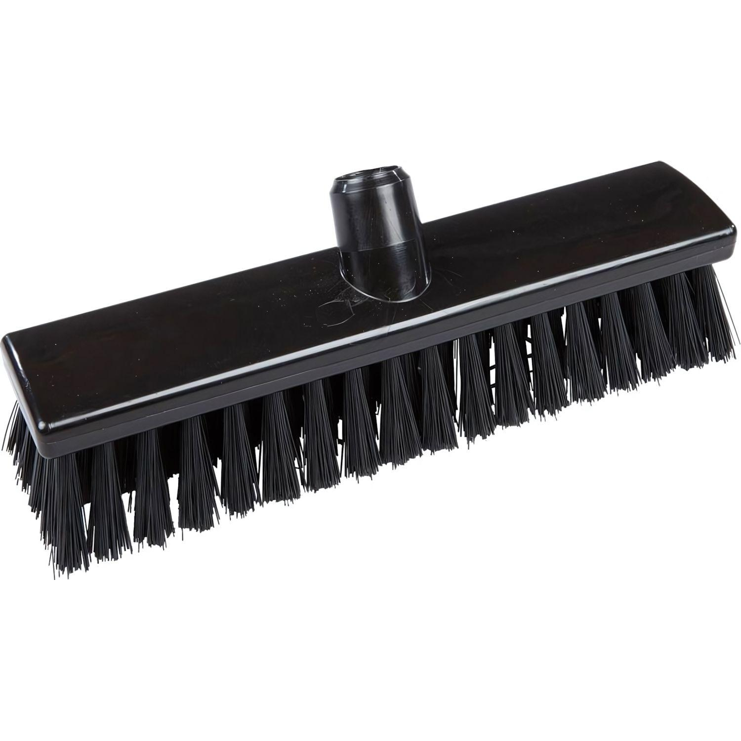 Щётка для пола FBK 30 см жёсткая без ручки (23155-6)Щётка с жёсткой щетиной предназначена для совмещения функций подметания и скребка. Жёсткий ворс позволяет эффективно удалять прилипшие загрязнения с напольных покрытий. Щётка соответствует требованиям ХАССП, выдерживает температуры от —20 °С до +134 °С и допускает автоклавирование при +134 °С.Щетина выполнена из полиэстера, её длина составляет 40 мм, толщина — 0.50 мм. Основание изготовлено из прочного пластика. Рабочая часть имеет размеры 30×6 см. Крепление рукоятки — резьбовое, диаметр тулейки 23 мм. Вес — 0.48 кг.