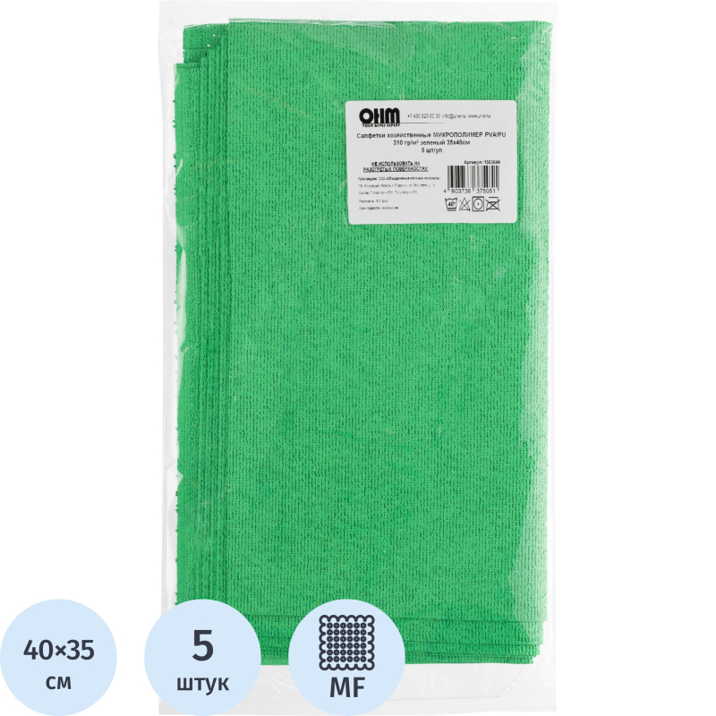 Салфетка хозяйственная микрополимер PVA/PU 35х40 310 г/м2 зеленый 5 шт/уп