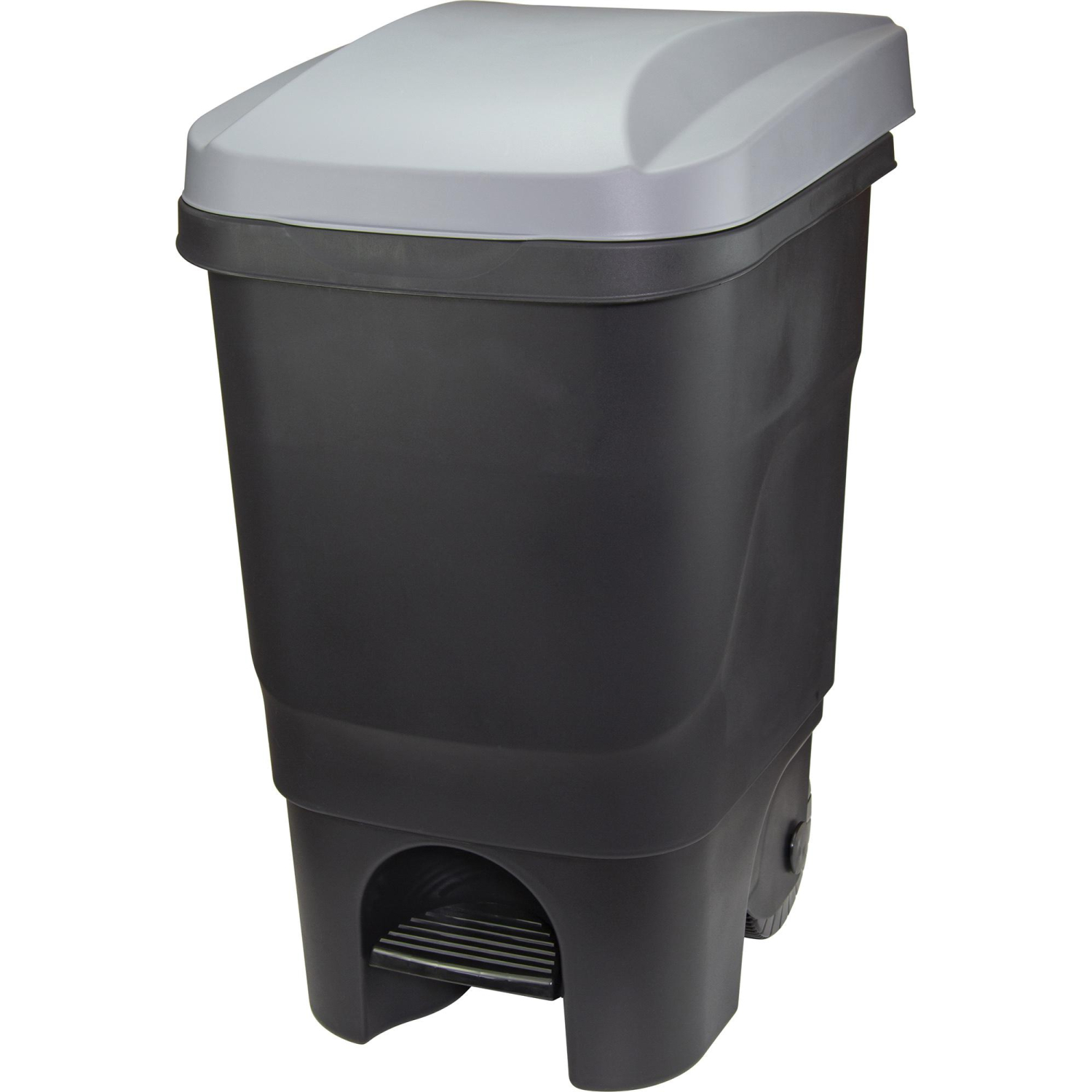 Контейнер-бак мусорный IDEA 60л с педалью на колесах серая крышка