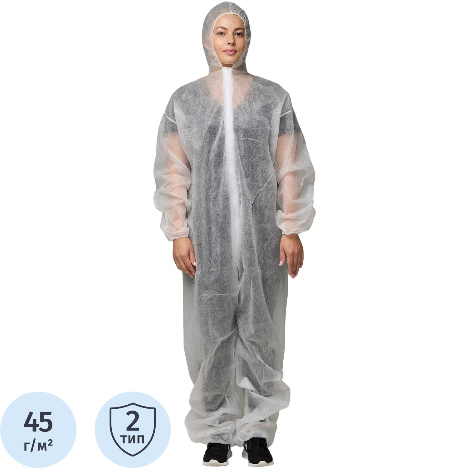 Комбинезон одноразовый Каспер, белый, 45 г/м2, р.L, кп