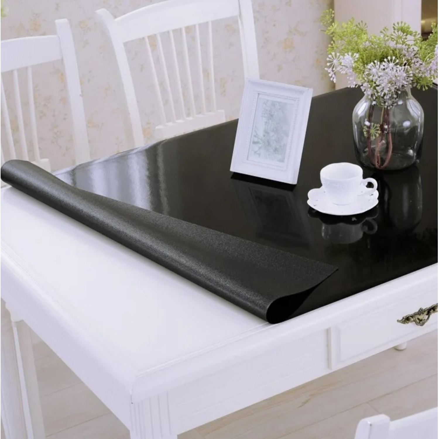 Скатерть жидкое (гибкое) стекло на стол Dekorelle 60×100×0,08 см чёрная 197RB-100. Скатерть на стол гибкое стекло, толщиной 0,8 мм, выполнена из ламинированных слоев винила ПВХ. Клеёнка на стол на кухню имеет повышенную глянцевость и стойкость к загрязнениям. Гибкое стекло подойдет не только для стола, но и для подоконника, тумбы, барной стойки, столешницы. Скатерть подойдет как на кухонный, так и на письменный стол, надежно защитит покрытие от царапин, сколов, излишней влаги, загрязнений. Жидкое стекло легко принимает новую форму и расправляется. Температура использования до +70°C. Мягкое стекло легко подрезается под необходимый размер. Допустима лёгкая усадка материала в течение недели, именно поэтому мы поставляем вам плёнку с запасом на усадку. Допустим запах «новой плёнки», который легко выветривается в течение дня. Скатерть гибкое стекло — это современное решение, способное подчеркнуть красоту вашего стола.Внимание! Перед первым использованием обязательна стирка!
