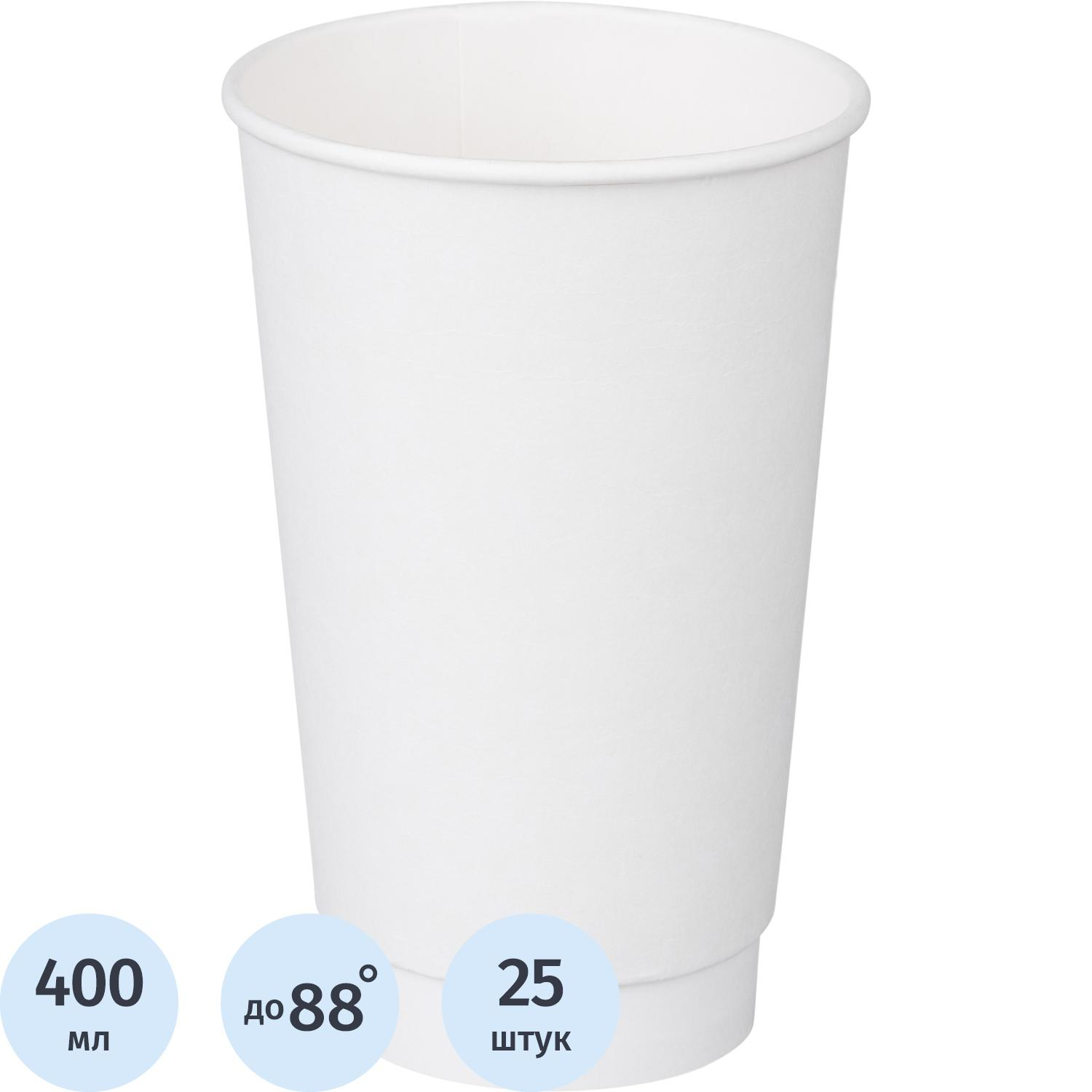 Стакан одноразовыйбум. 2-сл 400мл d-90мм белый, Комус, 25шт/уп