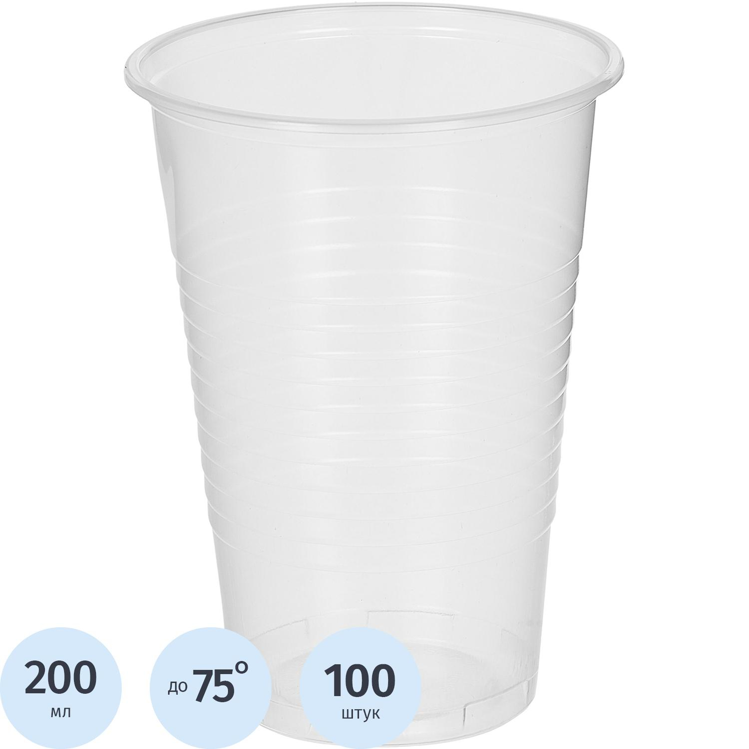 Стакан одноразовый 200мл прозр. для хол/гор., эконом, КОМУС ПП 100шт/уп