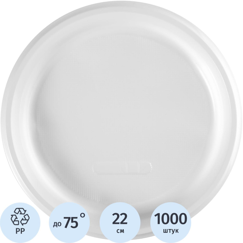 Тарелка одноразовая пластиковая Средний 220 мм белая 1000 штук в упаковке Одноразовые пластиковые тарелки предназначены для подачи горячих и холодных блюд. Эти тарелки идеально подходят для использования в офисах, на корпоративных мероприятиях, а также в системе общественного питания. Тарелки изготовлены из белого полипропилена, который выдерживает температуру до +75°С. Диаметр тарелки — 210 мм. В упаковке 500 штук. Внимание! Товар поставляется в транспортном коробе (короба могут отличаться по форме и размеру).