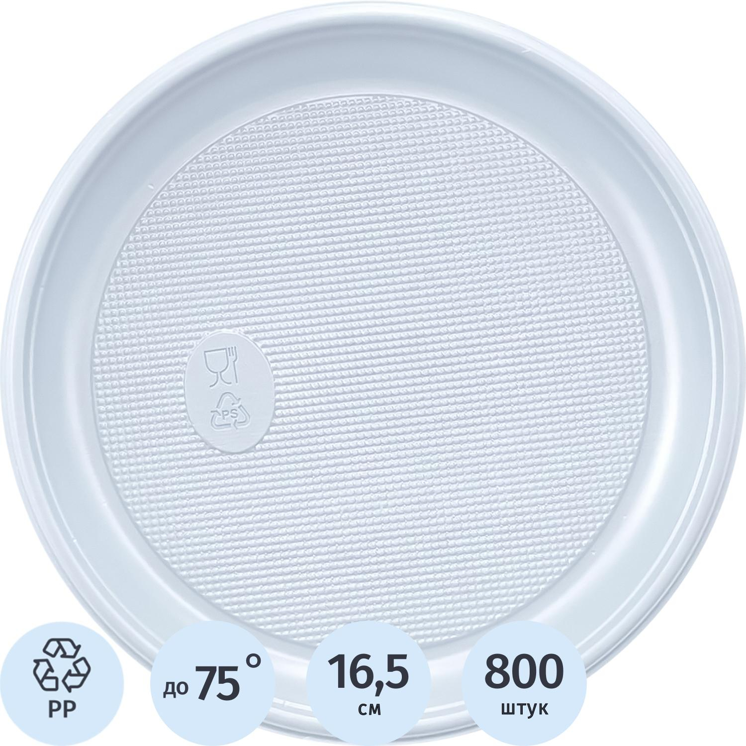 Тарелка одноразоваяd 165 мм, бел., ПП, 800 шт/кор