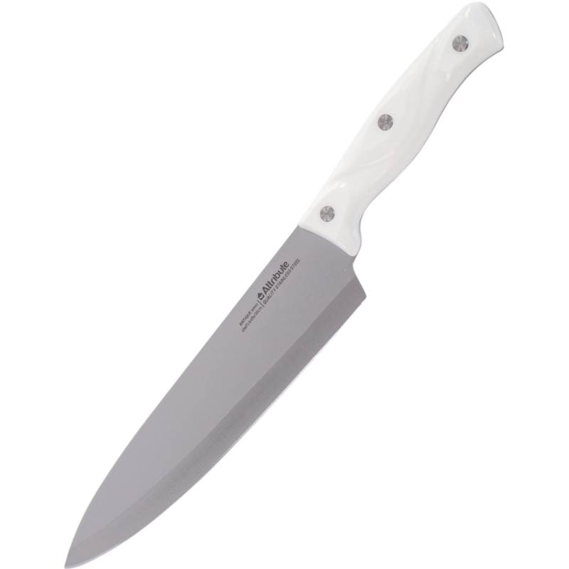 Нож кухонный Attribute Antique поварской лезвие 20 см (AKA021) Серия Antique имеет красивый мраморный эффект на ручке, благодаря чему он прекрасно подойдёт к современным интерьерам. Нож с накладным типом монтажа лучше многих, потому что он способен выдерживать более высокие нагрузки и имеет более прочную конструкцию. Благодаря ножам из серии Antique создаётся лицо современной кухни. Эта серия включает в себя разнообразные ножи для любых задач. Лезвие не гнётся и не ржавеет. Индивидуальная упаковка — двойной блистер.Нержавеющая сталь высокого качества марки 3Cr13. Безопасный ABC-пластик. — перед первым использованием требуется тщательно промыть изделия; — хранить изделия в чистом, сухом виде; — не рекомендуется использовать губки с абразивным слоем; — не рекомендуется промывка изделий в посудомоечной машине с использованием моющих средств, в состав которых входит активный кислород.