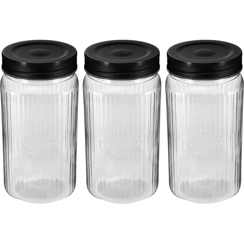 Набор банок квадратных с рельефом PREMIUM 1,3л, 3шт (Черный)