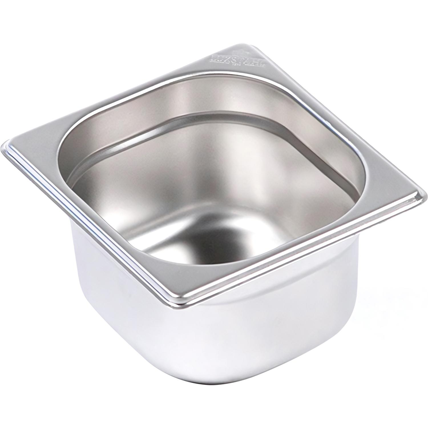 Гастроемкость Luxstahl GN 1/6 176×164×100 мм 1.6 л нержавеющая сталь.Гастроемкость из нержавеющей стали используется на кухне для хранения, транспортировки, приготовления и подачи различных продуктов и блюд.В гастроемкостях из нержавеющей стали можно жарить, тушить, запекать, готовить на пару, варить, томить и т. д.Геометрия гастроемкостей позволяет их вкладывать в друг друга (штабелировать), что значительным образом экономит место при их хранении без продукции внутри.Гастроемкости экологичны и гигиеничны при использовании — они выполнены из нержавеющей стали AISI 202 толщиной 0,8 мм, которая имеет высокую термостойкость и сохраняет свои свойства в диапазоне температур от -40 до 250 °С.Нержавеющая сталь и ее легирующие компоненты инертны по отношению к пищевым продуктам, что позволяет сохранять вкусовые качества приготавливаемых или хранящихся в них продуктов и блюд.Гастроемкости легко очищаются за счет скругленных углов и дезинфицируются (подходят для мытья в посудомоечных машинах), а также устойчивы к воздействию абразивных чистящих средств. — перед первым использованием требуется тщательно промыть изделия; — хранить изделия в чистом, сухом виде; — не рекомендуется использовать губки с абразивным слоем; — не рекомендуется промывка изделий в посудомоечной машине с использованием моющих средств, в состав которых входит активный кислород. Посуда для профессионального использования создана для ресторанов, кафе и других заведений общественного питания. Прочная, термостойкая и удобная — оптимальное решение для интенсивной работы.