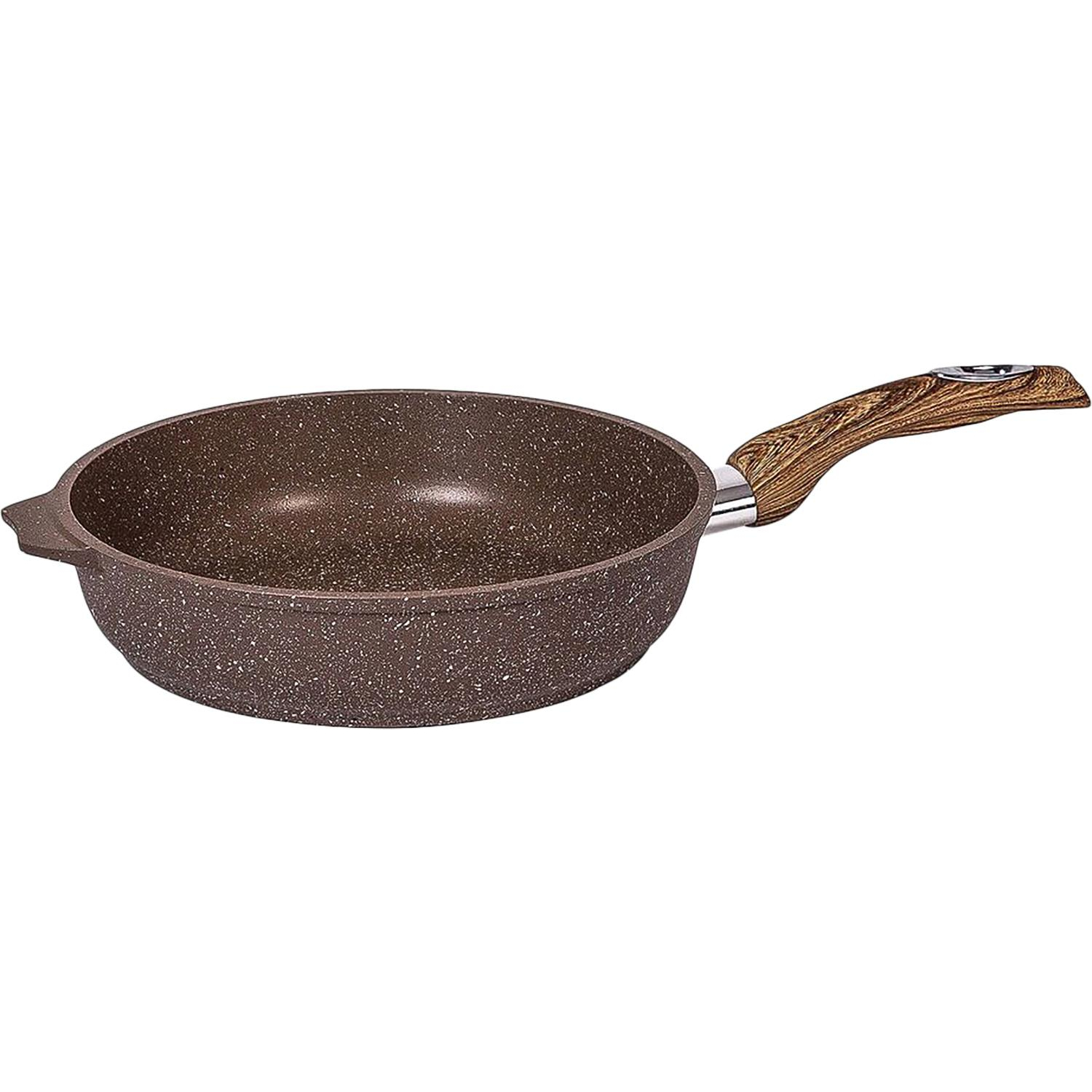 Сковорода Мечта Гранит алюминий 30 см.Литая алюминиевая сковорода Мечта серии Гранит 30 см с покрытием повышенной стойкости позволяет равномерно распределять и прекрасно удерживать тепло, экономить электроэнергию и готовить пищу качественнее и быстрее. Значительная толщина стенок и дна исключает деформацию корпуса изделий, гарантирует долговечность посуды и равномерное распределение тепла при приготовлении пищи. Антипригарное покрытие премиум класса Granit представляет собой многослойную систему, упроченную кристаллами минералов, которые выполняют роль армирующего звена. Благодаря этому получается мощнейшая монолитная структура, которая многократно повышает прочностные и антипригарные свойства покрытия. Все входящие в состав покрытия компоненты прошли жесткую проверку в отношении влияния на здоровье человека и окружающую среду, и поэтому оно является экологичным и абсолютно безопасным. Покрытие разработано немецкой компанией Weilburger Coatings GmbH, поставляется под торговой маркой Greblon. Оно имеет сертификаты FDA (Управления по надзору за качеством пищевых продуктов и медикаментов США) и BFR (Федеральный институт оценки рисков в Германии). Качество покрытия подтверждают отличные результаты тестирования в независимых компаниях и институтах. Наличие сертификата LGA (Институт независимых испытаний в Германии) и наград Немецкого института сравнительных испытаний доказывают высокое качество и безопасность. Покрытие не содержит перфтороктановую кислоту (PFOA), разработано на водной основе. Используемое антипригарное покрытие обладает высокой прочностью, пища не пригорает и сохраняет полезные свойства. Сковорода оснащена удобной ручкой soft touch, не нагревающейся в процессе готовки и обеспечивающей надежный захват. Подходит для газовых, электрических и стеклокерамических плит. Цвет — коричневый.