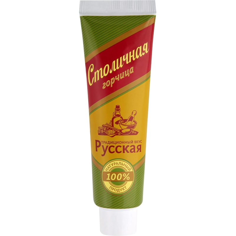 Горчица МЖК «Столичная Русская» 100 г. Традиционная русская приправа, крепкая и ароматная, приготовленная из натуральных продуктов. Не содержит ГМО.Состав: вода, горчичный порошок, сахар, масло подсолнечное рафинированное дезодорированное, регулятор кислотности уксусная кислота, соль, перец черный, лавровый лист.Пищевая ценность в 100 г: белки — 9,6 г, жиры — 10,9 г, углеводы — 21,5 г.Энергетическая ценность: 232 ккал/ 972 кДж.Хранить при температуре от 0°C до +18°C.Срок годности: 4 месяца.Страна производства: Россия.