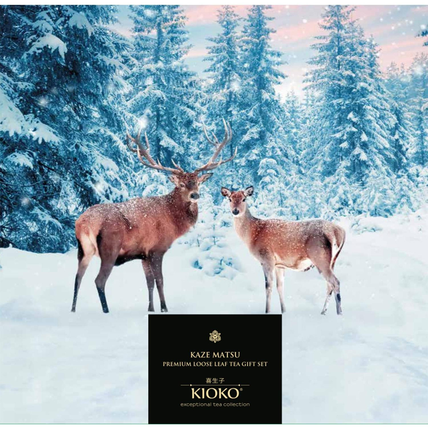 Чай листовой чёрный и зелёный Kioko Kaze Matsu 90 гПремиальный набор листового чая Kioko Kaze Matsu в подарочном футляре с шубером, изображающим статных оленей в сказочном зимнем лесу, состоит из шести популярных сортов чёрного, зелёного чая и улуна, которые с каждым глотком раскрывают неповторимые оттенки вкуса.Состав:Adam’s View F.B.O.P.F.: чай чёрный цейлонский; Halmari Assam T.G.F.O.P.: чай чёрный индийский; Wuyi Shan: чай чёрный китайский; Oishii Genmaicha: чай зелёный китайский;Getsu Divine Tie Guan Yin: чай улун китайский; Ginseng Oolong: чай улун китайский.Способ приготовления: Adam’s View F.B.O.P.F., Assam Halmari T.G.F.O.P., Wuyi Shan: 2-3 г. заварить в 300 мл горячей воды 100ºС и дать настояться 2-3 минуты.Oishii Genmaicha: 2,5 г. заварить в 300 мл горячей воды 75-85ºС и дать настояться 2-3 минуты.Ginseng Oolong, Getsu Divine Tie Guan Yin: 2,5 г. заварить в 300 мл горячей воды 90-100ºС и дать настояться 3-5 минут.Вес: 90 г.Тип упаковки: картонная коробка, картонно-навивные тубусы.Условия хранения: хранить в сухом месте при относительной влажности воздуха не более 70% в плотно закрытой упаковке отдельно от сильно пахнущих продуктов. Страна производства: Россия.