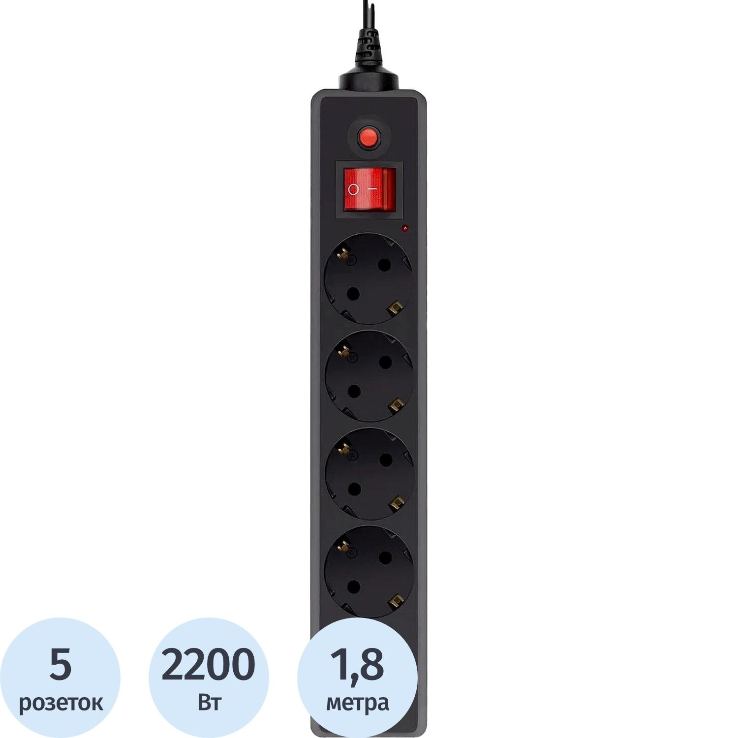 Сетевой фильтр Buro 500SH-1.8-UPS-B 1.8м (5 розеток) черный(коробка)