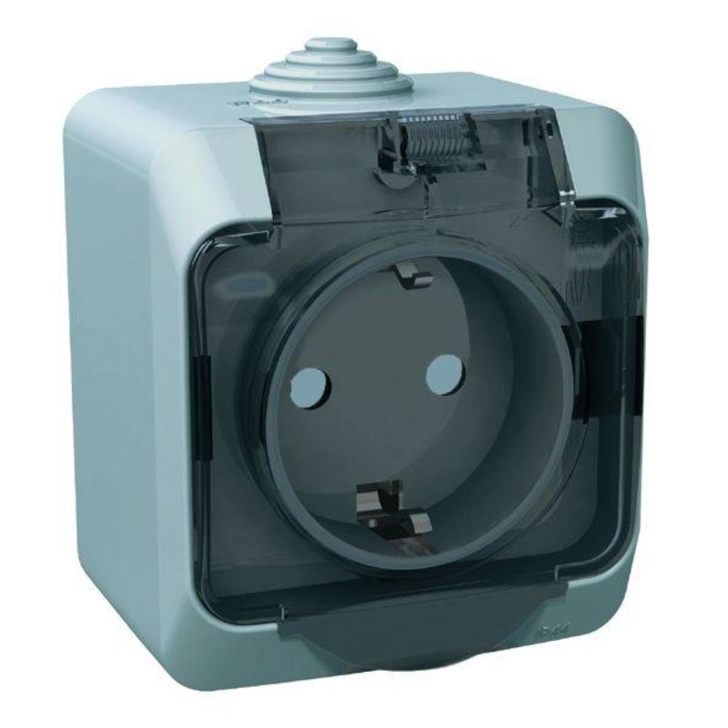 Розетка 1-ая с/з с кр. с защитными шторк. IP44 SE Этюд Серый (PA16-044C)О/У