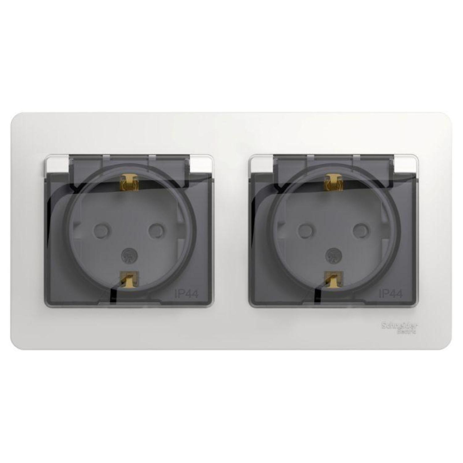 Розетка 2-ая с/з со шт. в сборе IP44 SE Glossa Белый (GSL000147)