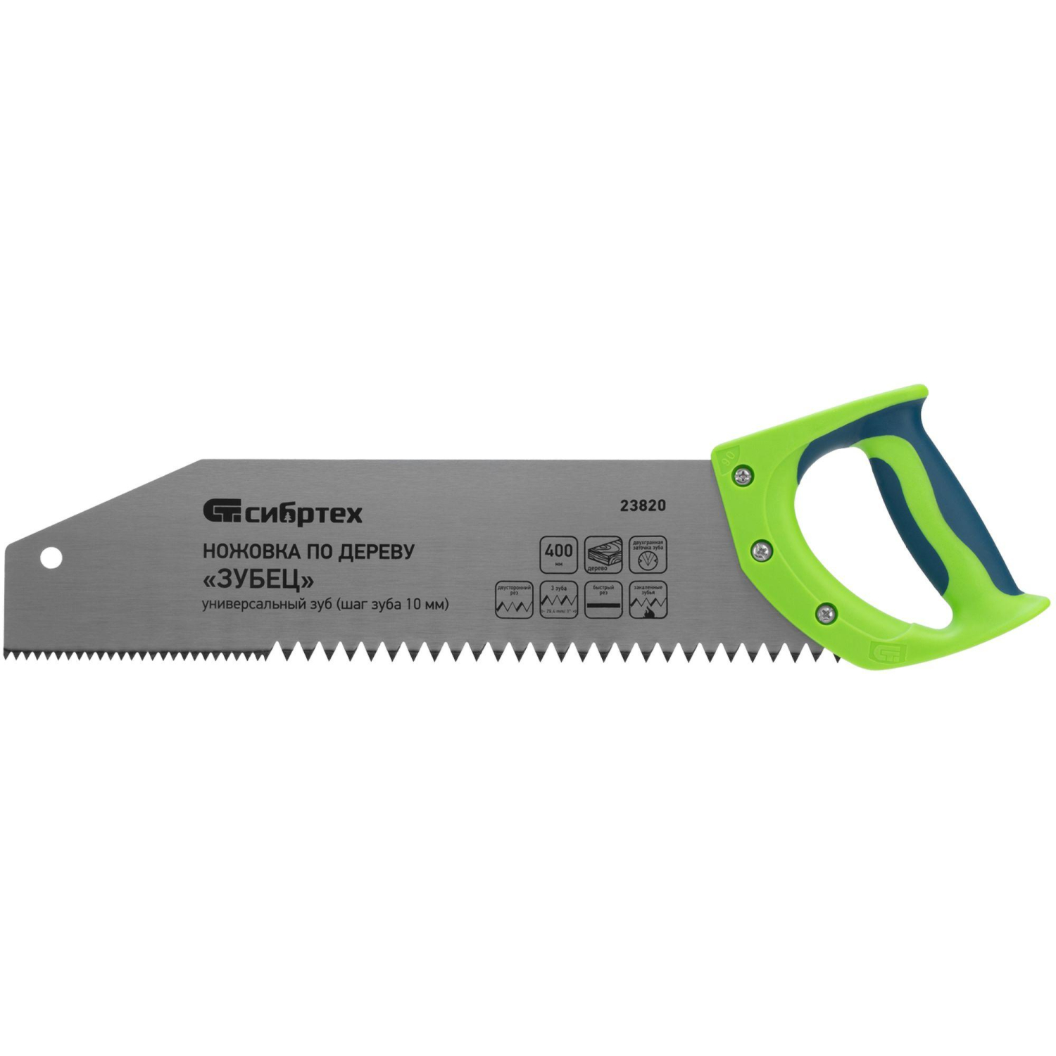 Ножовка по дереву 400 мм 7-8 TPI зуб 2D каленый зуб Сибртех Зубец 23810