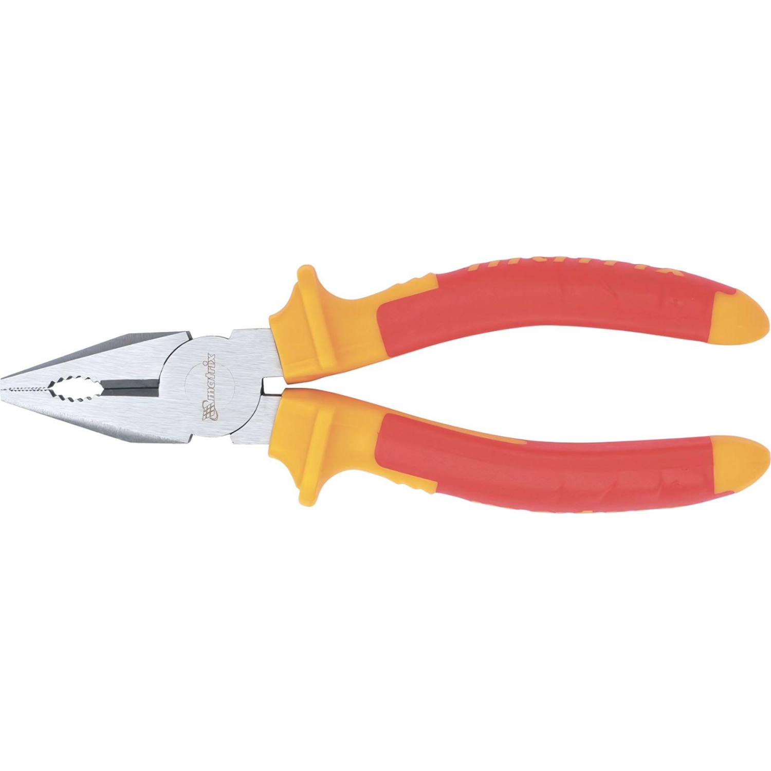 Плоскогубцы диэлектрические 160 мм Insulated Matrix 16901 имеют знак GS (Geprufte Sicherheit) — испытанная безопасность, присвоенный союзом работников технического контроля Германии — TUV (Technische Uberwachungsverein). Изготовлены из высококачественной хромованадиевой инструментальной стали, выплавленной в электропечи, закаленной в масле и отпущенной. Двухкомпонентные эргономичные рукоятки обеспечивают комфорт при работе и исключают выскальзывание инструмента из рук. Износостойкие губки с зонами захвата для плоских и круглых деталей обладают твердостью по шкале Роквелла в 43–50 HRC. Режущие кромки дополнительно закалены токами высокой частоты до твердости 62 HRС, что позволяет резать мягкую и твердую проволоку. Безопасны при работе с оборудованием напряжением до 1000 В. Соответствуют электротехническим нормам безопасности Германского союза электротехников — VDE (Veiband Deutscher Electrotechniker).Внешний вид и/или характеристики товара могут быть изменены производителем в соответствии с производственным процессом.
