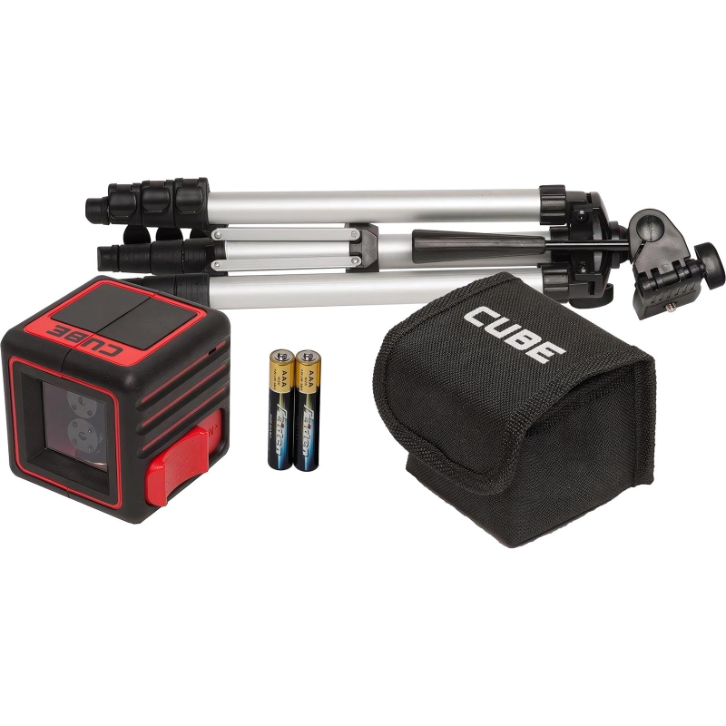 Конструкция лазерного уровня ADA CUBE создавалась с расчетом на агрессивные условия эксплуатации. Сопротивляемость нагрузкам максимально высокая. Удары, падения, попадание брызг, пыль — материалы, из которых изготовлен лазерный уровень, выбирались специально для надежной работы в тяжелых условиях строительной площадки. Резиновые накладки со всех сторон предохраняют прибор от повреждений. Ребристая поверхность не даст уровню выскользнуть из рук при перестановке. Резьба ¼ дюйма в основании прибора позволяет устанавливать уровень на фото-штатив или универсальное крепление. Простое управление: Включение и разблокировка удобной, большой кнопкой. Надежный фиксатор предохраняет маятник при транспортировке. Автоматическое выравнивание: При включении прибор автоматически выравнивается. О выходе за пределы самовыравнивания оповестит звуковая сигнализация. Максимальное отклонение от вертикальной оси 3 градусов. Проекцирует перпендикулярные, четкие лазерные лучи в форме креста на поверхность. Отлично подходит для точной разметки в ремонте, строительстве. С его помощью можно выполнить любую работу с разметкой: ровно повесить полку, картину на стене, поклеить обои, разметить штробы для электропроводки, установить направляющие для гипсокартонных конструкций, установить маяки для выравнивания пола и стен, направляющих для подвесного потолка и т. д. Для проекции используются раздельные лазерные излучатели. Это позволяет получить четкие и яркие лазерные линии без расслоения на внушительном расстоянии для такого компактного лазерного уровня. Угол развертки 100градусов. При установке на горизонтальной поверхности вертикальный луч начинается в 1 см от прибора. Очень удобно, например, при укладке плитки на полу. Легкий алюминиевый штатив с выдвижной колонкой для установки уровня на высоте от 35 до 110 см. Подъемной частью можно плавно регулировать высоту в диапазоне 25 см. Штатив позволяет быстро установить уровень на  нужной высоте в любом месте. Технические характеристики Рабоч##й диапазонВнешний вид и/или характеристики товара могут быть изменены производителем в соответствии с производственным процессом.