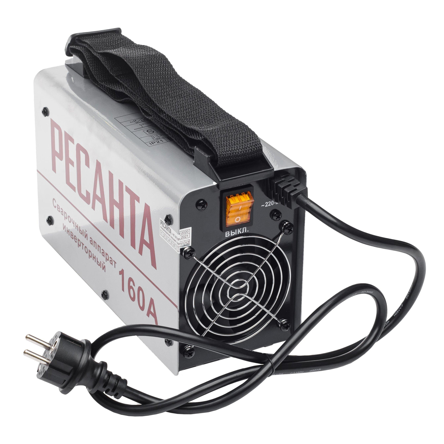 Инверторный сварочный аппарат Ресанта САИ 160 предназначен для использования в ручной дуговой сварке штучными электродами (мах 4мм) с покрытием. Модель отличается высокой производительностью, низким уровнем шума, обеспечивает высокое качество сварных швов. Сварочный аппарат имеет класс защиты IP21, построен на IGBT-транзисторах. Функции: Hot start (горячий старт), Anti stick (антизалипание), Arc force (форсаж дуги). Диапазон рабочего напряжения — 220—240 В, максимальная мощность — 4,8 кВт, максимальный потребляемый ток — 22А, напряжение дуги — 26В. Малый вес аппарата  — всего 4,5 кг — позволяет сварщику легко перемещаться по рабочей площадке. Комплектация: наплечный ремень; кабель с электрододержателем (2 м); кабель с клеммой массы (1,5 м).