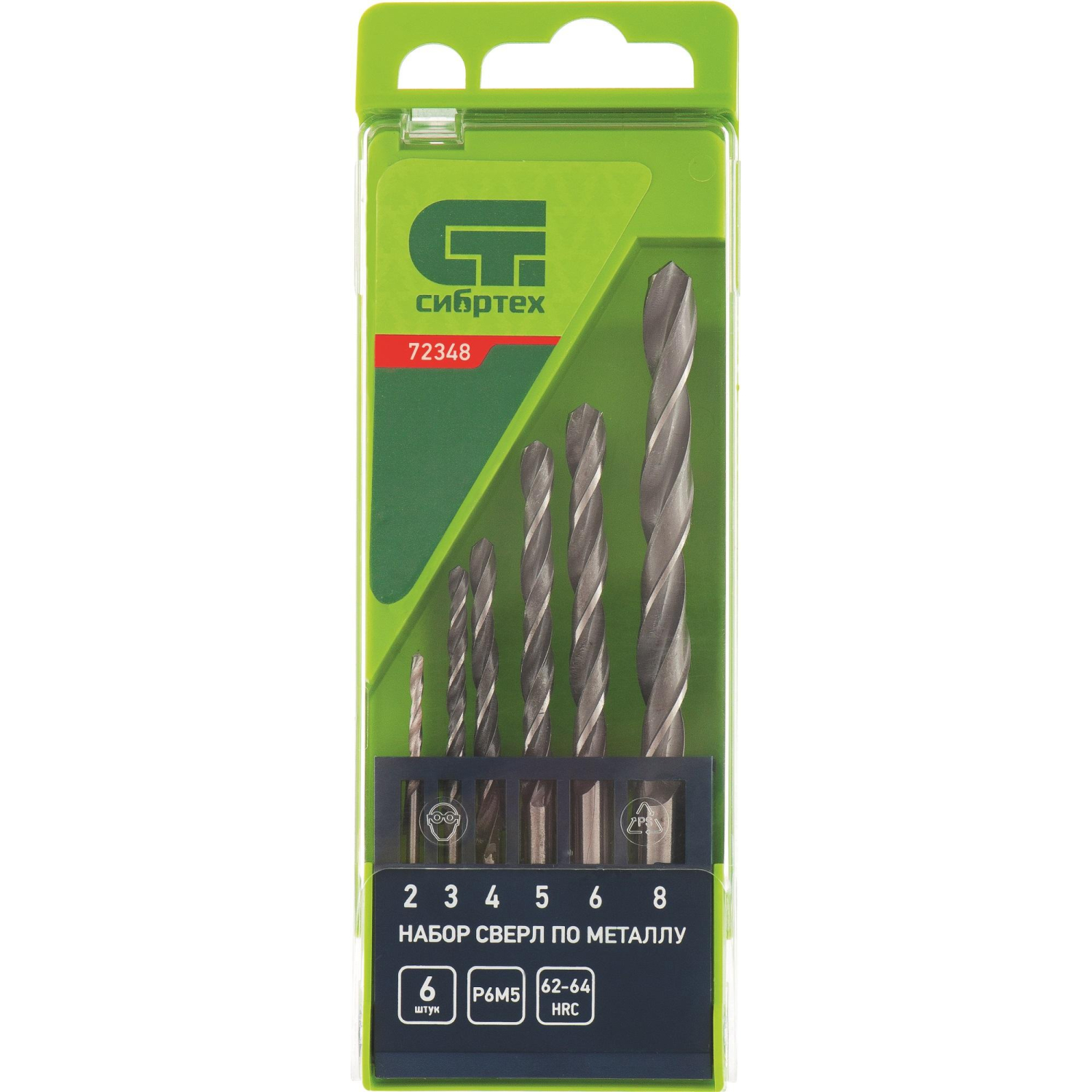 Набор сверл по металлу СИБРТЕХ, 2-8 мм, 6шт. Р6М5 (72348)