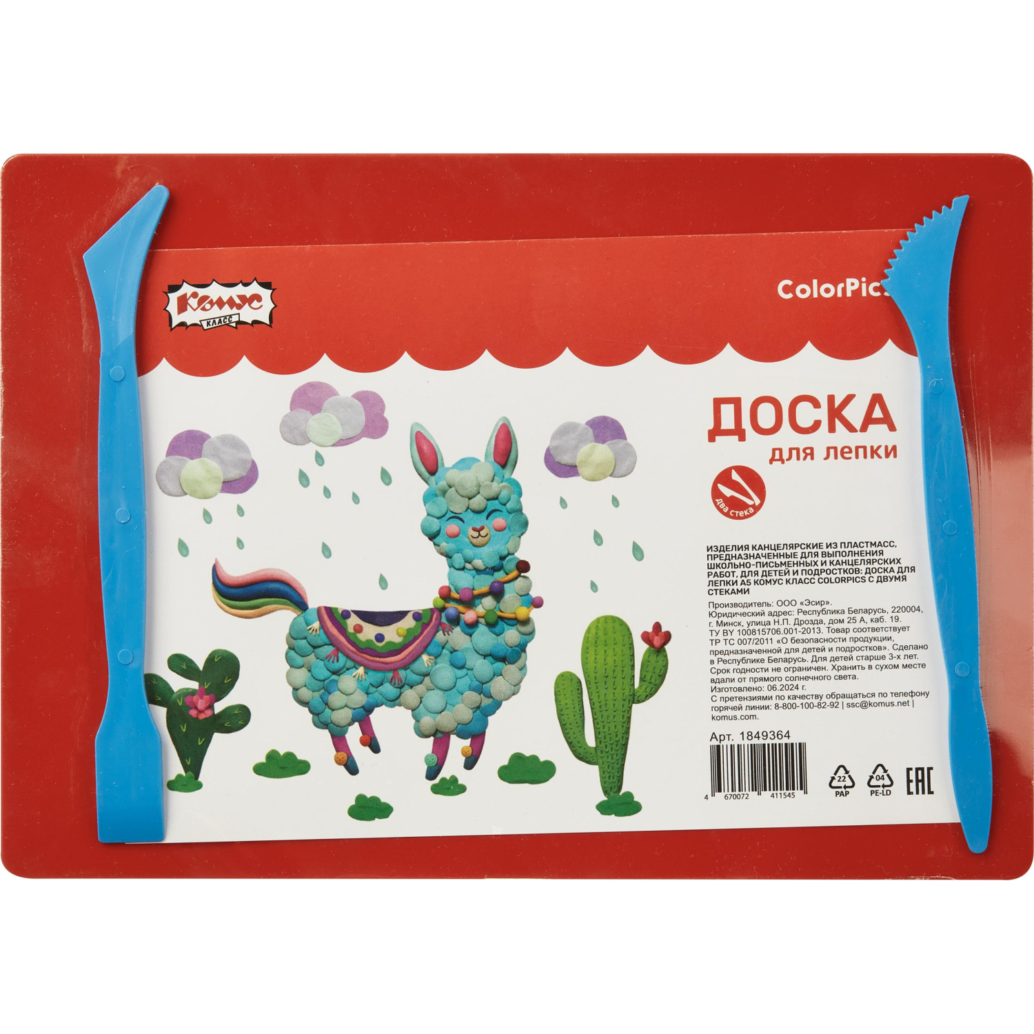 Доска для лепки А5 с двумя стеками производится из жесткого пластика с закругленными краями. Дополнительно комплектуется двумя стеками для лепки. Материал устойчив к царапинам. Позволяет детям заниматься лепкой, предохраняя мебель от загрязнения. Упакована в термоусадочную пленку с ярким вкладышем.В рамках ребрендинга производится перевод данного артикула с ТМ № 1School на ТМ Комус Класс с сохранением всех потребительских характеристик товара. На переходный период допускается поставка данной продукции в двух вариантах дизайна.