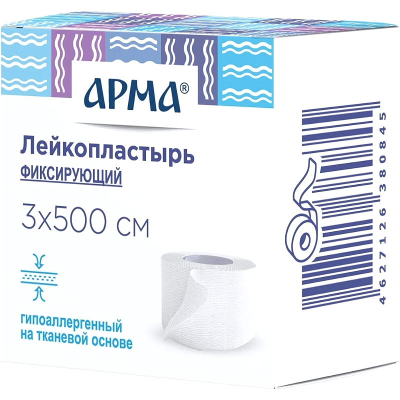 Фиксирующий рулонный лейкопластырь Арма на тканевой основе белого цвета предназначен для фиксации повязок, компрессов и предметов медицинского и послеоперационного назначения (катетеров, трубок, зондов, канюль, датчиков и других элементов на теле пациента, в том числе вокруг глаз). Можно использовать в качестве тейпов для лица и на спортивных тренировках обматывать пальцы на руках. Пластырь подходит для детей с 0 лет и взрослых с чувствительной кожей, так как изготовлен из высококачественных материалов, в основе которых гипоаллергенный клей и хлопок. Удаляется пластырь, не причиняя боли и не оставляя следов клея. Состав: 100% хлопковая ткань мадаполам, клей из искусственного каучука, не вызывающего аллергию. Размеры пластырей: ширина ленты — 3 см, длина — 5 м.