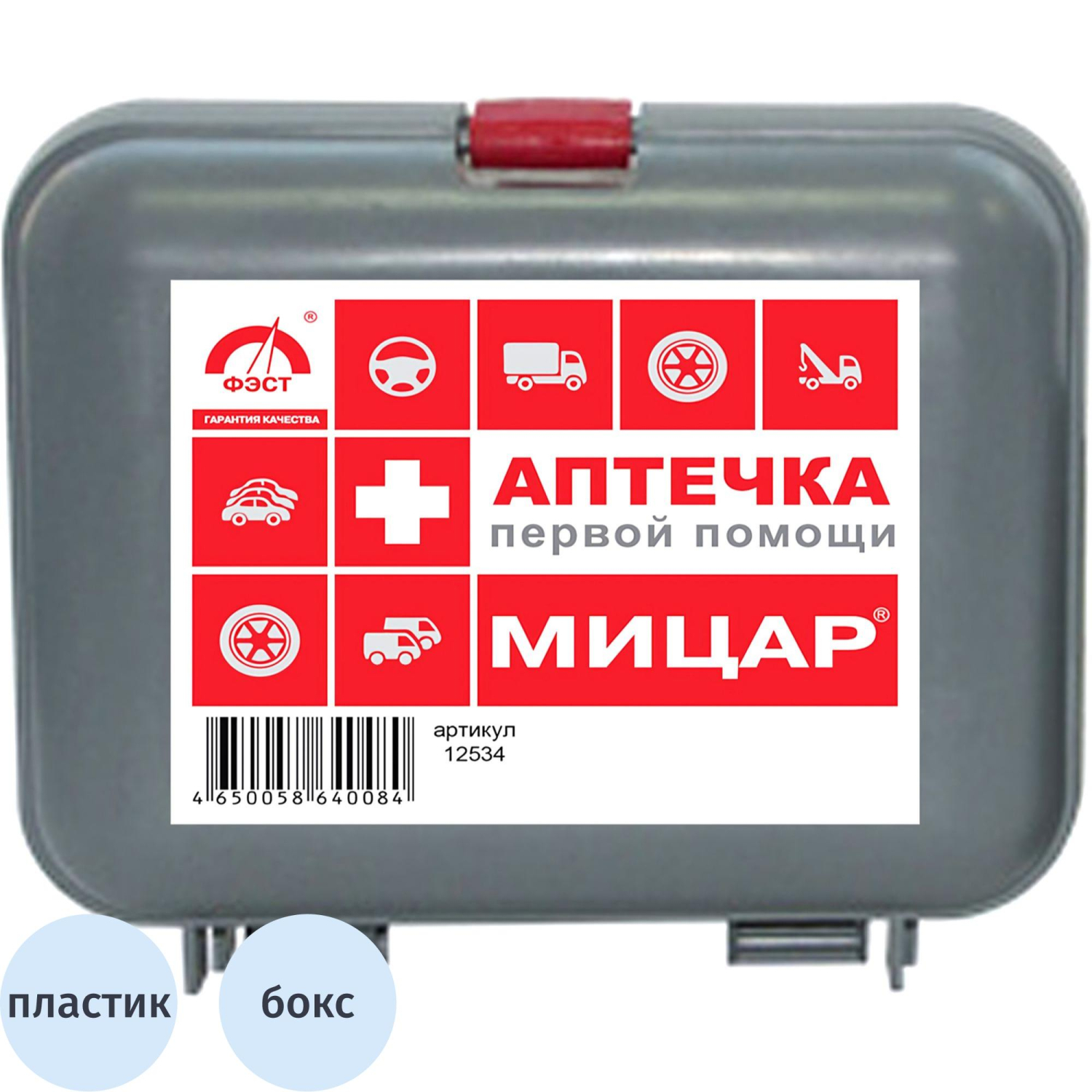 Аптечка дорожная Мицар состав &8470; 2. Аптечка соответствует ТУ 9398-108-50117782-2010.Состав:1 Жгут кровоостанавливающий &8722;1 шт.2. Бинт марлевый медицинский нестерильный 5 м х 5 см: 2 шт.3. Бинт марлевый медицинский нестерильный 5 м х 7 см: 1 шт.4. Бинт марлевый медицинский стерильный 5 м х 5 см: 1 шт.5. Бинт марлевый медицинский стерильный 5 м х 10 см: 1 шт.6. Лейкопластырь 1×250: 1 шт.7. Лейкопластырь бактериц.ипм. 19×72 мм; 7,2×2,3 см: 2 шт.8. Устройство УДР: 1 шт.