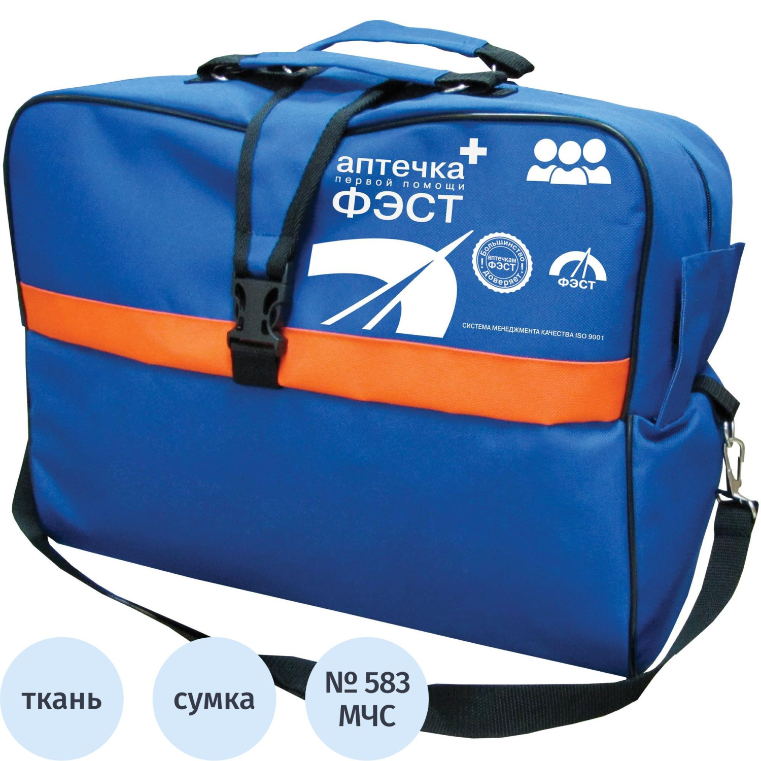 Аптечка первой помощи коллективная ФЭСТ для оснащения защитных сооружений гражданской обороны (ЗС ГО) на 400–600 человек.Аптечка изготовлена в соответствии с приказом МЧС РФ от 15.12.2002 г. № 583.ТУ 9398-087-10973749-2009Состав1. Аммиака раствор 10, 10 мл или 40 мл, 2 флакона.2. Бриллиантового зеленого раствор 1, 10 мл, 5 флаконов.3. Раствор йода спиртовой 5, 10 мл или ампулы по 1 мл № 10, 5 флаконов.4. Бромкамфора, таблетки 0,25 г № 30 или корвалол 15 мл, 1 упаковка/1 флакон.5. Калия перманганат, 3 г, 3 упаковки.6. Таблетки от кашля № 10, 3 упаковки.7. Уголь активированный, таблетки 250 мг № 10 3 упаковки.8. Борная кислота 3, спиртовой раствор 25 мл или 10 мл, 6/15 флаконов.9. Фталазол, таблетки 0,5 г № 10, 3 упаковки.10. Клей 'БФ-6', туба 15 г, 1 штука.11. Сульфацила натрия раствор 20, 1 мл № 2 тюбик-капельница или 5 мл флакон-капельница, 25 упаковок/10 флаконов.12. Лоперамид, табл. № 10, 2 упаковки.13. Сульфадиметоксин, табл. 500 мг № 10, 3 упаковки.14. Вата медицинская гигроскопическая стерильная, 50 г 5 упаковок.15. Бинт стерильный 5 м на 10 см, 10 штук.16. Бинт стерильный 7 м на 14 см, 10 штук.17. Лейкопластырь 5×500 см 1 штука.18. Салфетки марлевые медицинские стерильные 16×14 см, № 20, 1 упаковка.19. Анальгин, таблетки 500 мг № 10, 5 упаковок.20. Валидол, таблетки 60 мг № 6 или № 10, 7 упаковок.21. Ацетилсалициловая кислота, табл. 500 мг № 10, 3 упаковки.22. Нитроглицерин, капсулы 0,5 мг № 20 или табл. 0,5 мг № 40, 4 упаковки/2 упаковки.23. Жгут кровоостанавливающий, 2 штуки.24. Термометр медицинский, 10 штук.25. Комплект заготовок шин транспортных разового использования ЗШТ-1, 4 штуки.26. Настойка валерианы 25 мл, 4 флакона.27. Стаканчик мерный, 4 штуки.28. Цитрамон, таблетки № 10, 3 упаковки.29. Грелка резиновая № 2, 1 штука.30. Ножницы медицинские, 1 штука.31. Ванночка глазная, 20 штук.32. Гипотермический (охлаждающий) пакет, 1 штука.33. Футляр для аптечки, 1 штука.Внимание! Аптечка поставляется в двух видах дизайна (без возможности выбора).