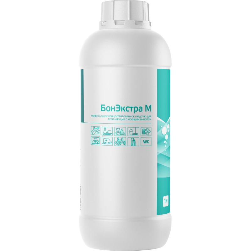 Дезинфицирующее средство БонЭкстра концентрированное. Состав: ЧАС, функциональные добавки, в т. ч. в капсулированной форме, НПАВ, ингибитор коррозии, вода очищенная. Микробиоцидная активность в отношении: грамотрицательных и грамположительных бактерий (включая возбудителей туберкулеза и ИСМП); вирусов (включая коронавирусы, вирус полиомиелита, аденовирусы, энтеровирусы, ротавирусы, вирусы энтеральных, парентеральных гепатитов, герпеса, атипичной пневмонии, птичьего и свиного гриппа, ВИЧ); патогенных грибов рода Кандида, Трихофитон. Назначение: дезинфекция, мытье и дезодорирование всех видов поверхностей, кувезов, аппаратуры и оборудования, транспорта; обеззараживание и стирка белья, в т. ч. совмещенные в одном процессе, в т. ч. в автоматических стиральных машинах; обеззараживание и мытье посуды, в т. ч. совмещенные в одном процессе; предстерилизационная очистка изделий медицинского назначения и эндоскопов ручным и механизированным способом в УЗУ; отлично уничтожает жирные, масляные и белковые загрязнения, не обесцвечивает бельё и не вызывает коррозии металлов.Срок годности рабочих растворов — до 41 суток. Режим ПСО (при концентрации рабочего раствора 0,5%) — от 5 мин.Законодательные и технические документы