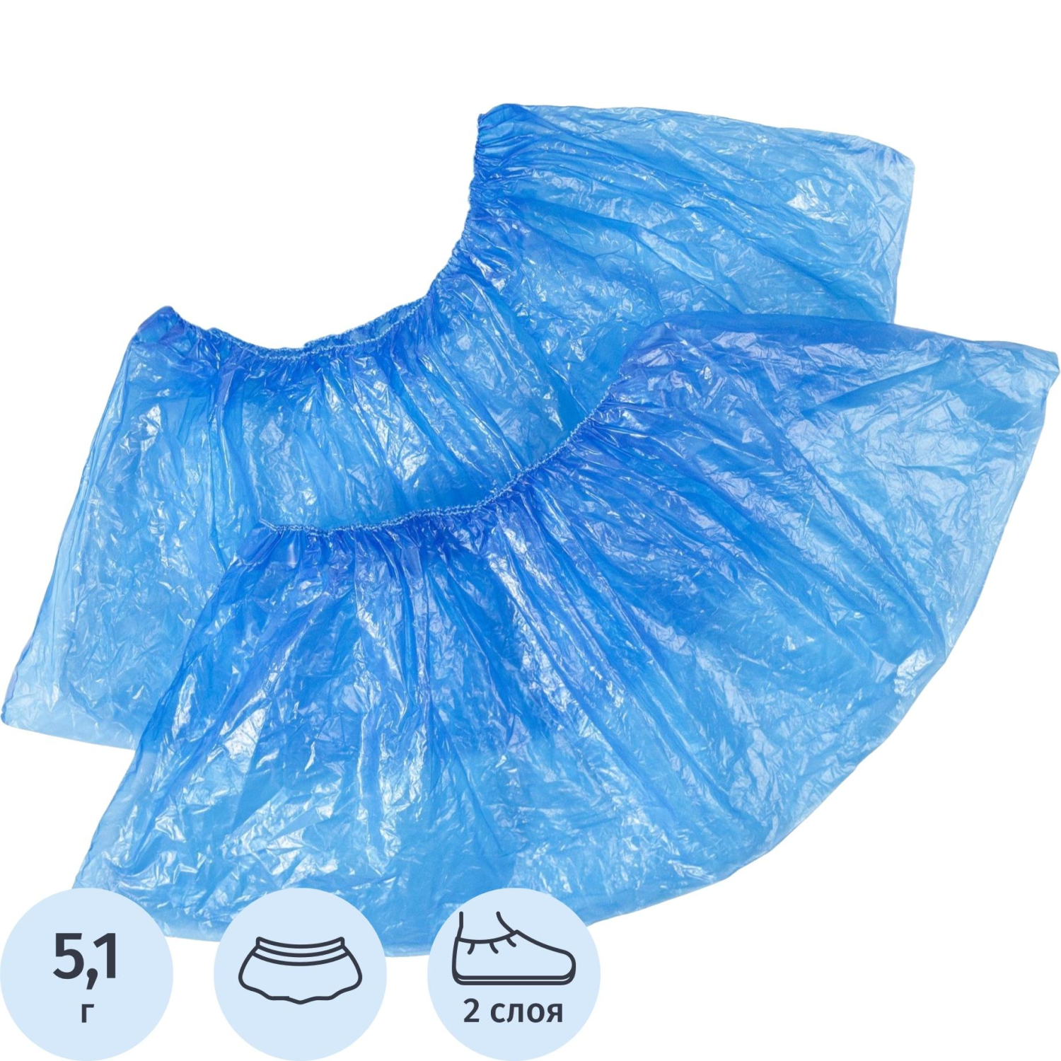 Бахилы н/с, п/э с 2й рез. 5,1г ПНД2-8/15/2р-С-С, голубые, 450пар/уп