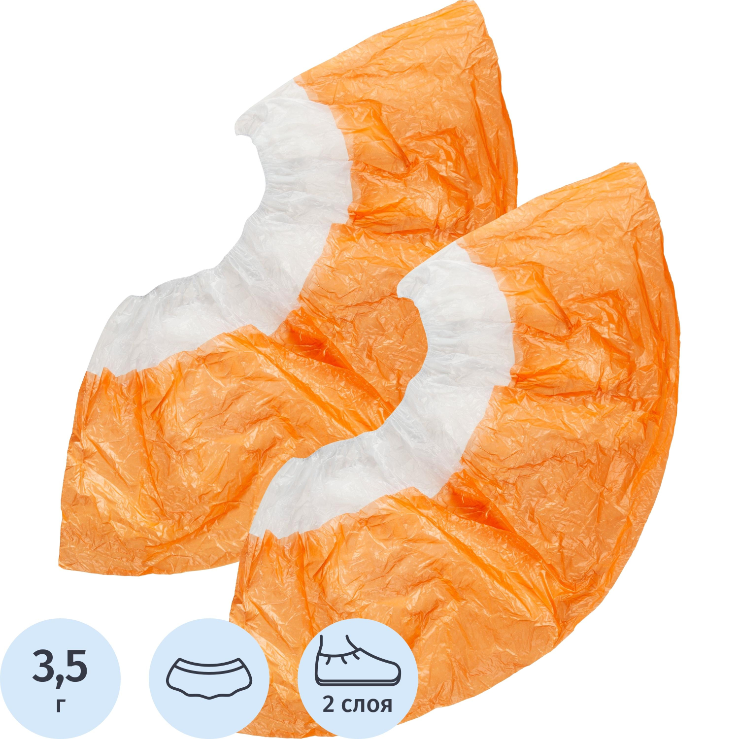 Бахилы н/с, п/э 2х слойн, 3,5г, ПНД-8/8/1р-Б-Ор, бело-оранжевые, 50пар/уп