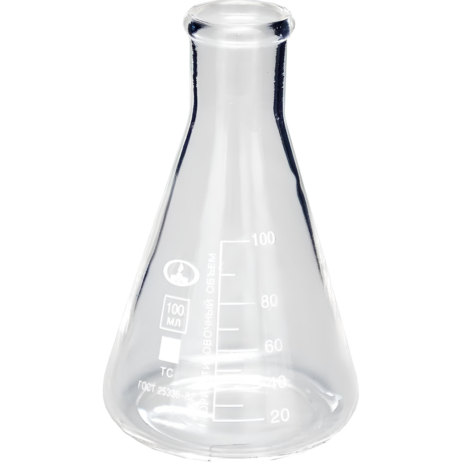 Колба коническая (Эрленмейера) разработана для фильтрования, выпаривания, перегонки, разгонки, дистилляции и синтеза в лабораторных условиях. Производится с ориентировочной шкалой белого цвета. Изготовлена из стекла ТС по ГОСТ 21400-75. Изготовлена по ТУ 9464-019-29508133-2015 в соответствии с техническими требованиями ГОСТ 25336-82. Тип Кн, исполнение 2.Вместимость — 100 мл. Цена деления — 10 мл. Диаметр горловины — 22+1,5 мм. Диаметр колбы — 64+1,5 мм. Высота — 105+3,0 мм.