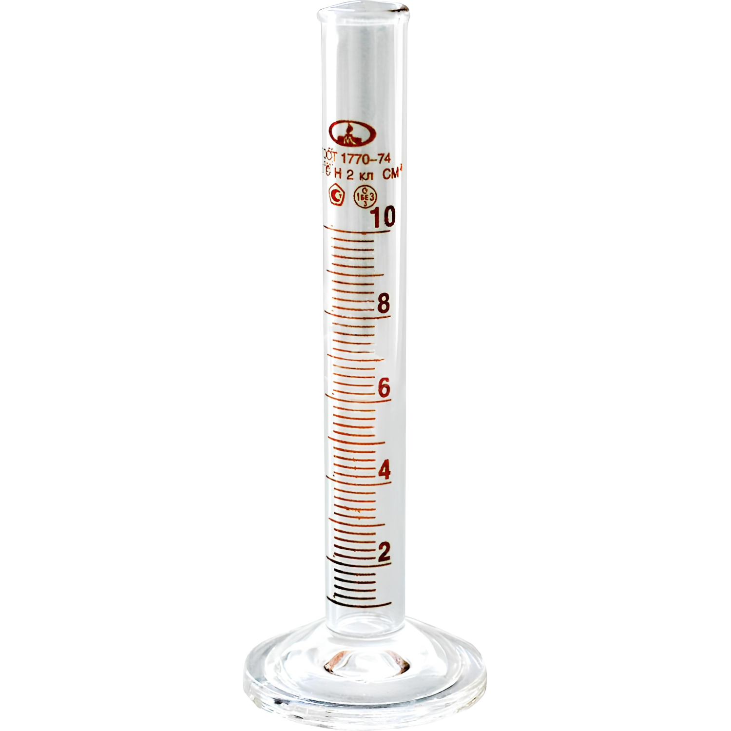 Разработан для дозирования нелетучих жидкостей. Изготовлен по ТУ 9464-013-52876351-2014 в соответствии с техническими требованиями ГОСТ 1770-74. Изделия изготовлены из химико-лабораторного стекла по ГОСТ 21400. Исполнение 1, класс точности 2. Нанесенная шкала коричневого или белого цветов совершенно устойчива к любым воздействиям. Объем — 10 мл. Допустимая погрешность — +0,2 мл. Цена деления — 0,2 мл. Высота не более — 140 мм.