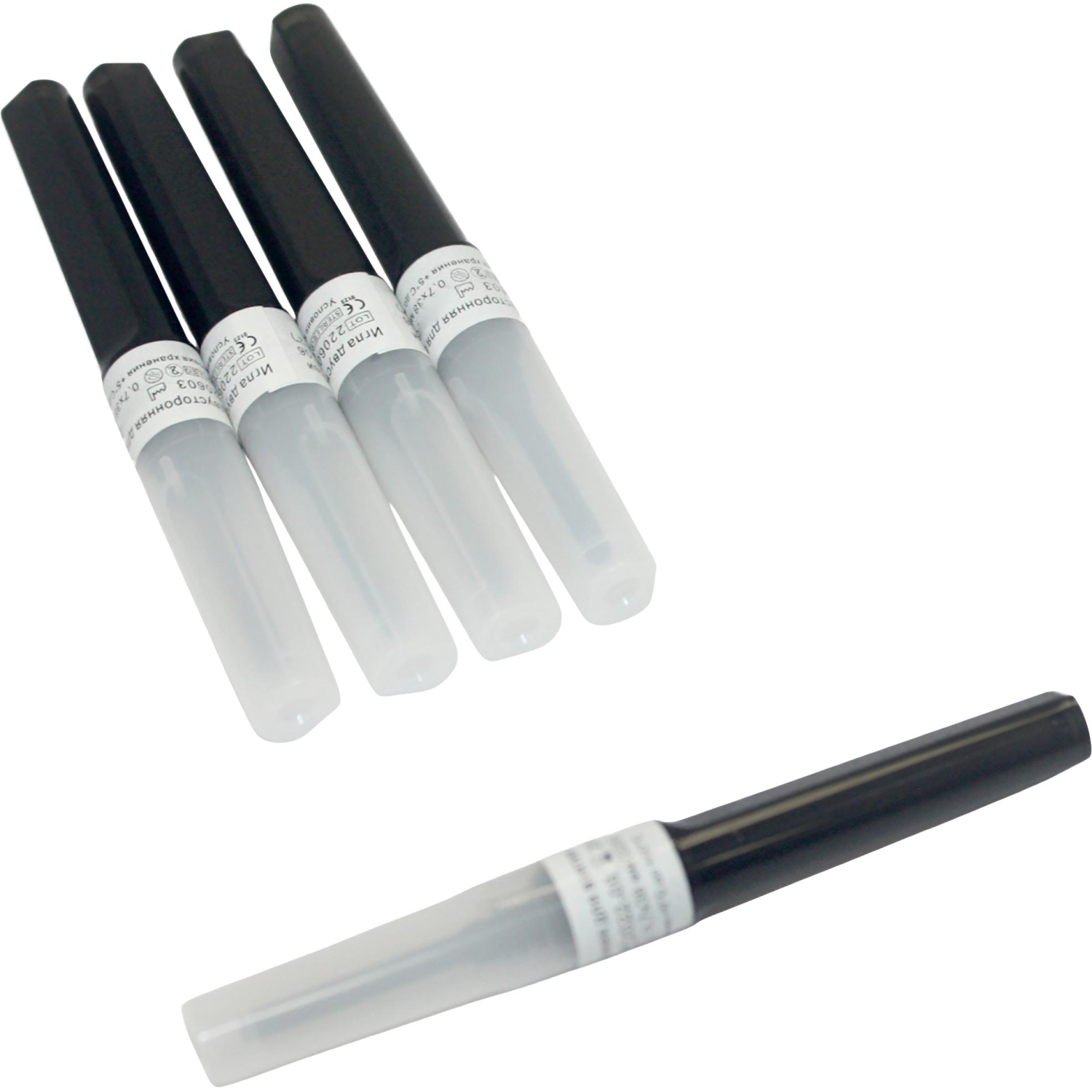 Игла двусторонняя для вакуумной пробирки размер 22Gх1 1/2″ (0.7×38мм) тонкостенная в соответствии с ГОСТ Р ИСО 9626-2013. Внутренний диаметр иглы — 0.440, цвет черный. Назначение: для отбора проб у одного пациента. Материал иглы — нержавеющая сталь. Игла имеет силиконизированное покрытие, гибкий клапан из каучука на конце, предназначенный для предотвращения обратного тока крови, двойной косоугольный срез с сагиттального конца иглы, тройную копьевидную заточку лазером и резьбовое соединение для крепления с иглодержателем. Этикетка с маркировкой СЕ (международный сертификат). Стерилизация этилен оксидом.